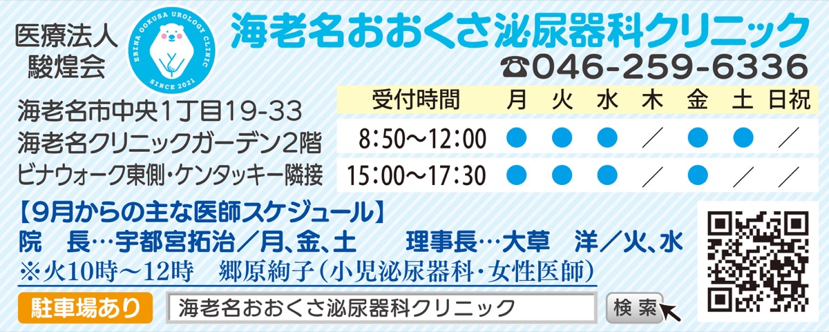 県央地域では数少ない泌尿器科に特化した「海老名おおくさ泌尿器科クリニック」が、海老名クリニックガーデン(海老名市中央)2階にある。