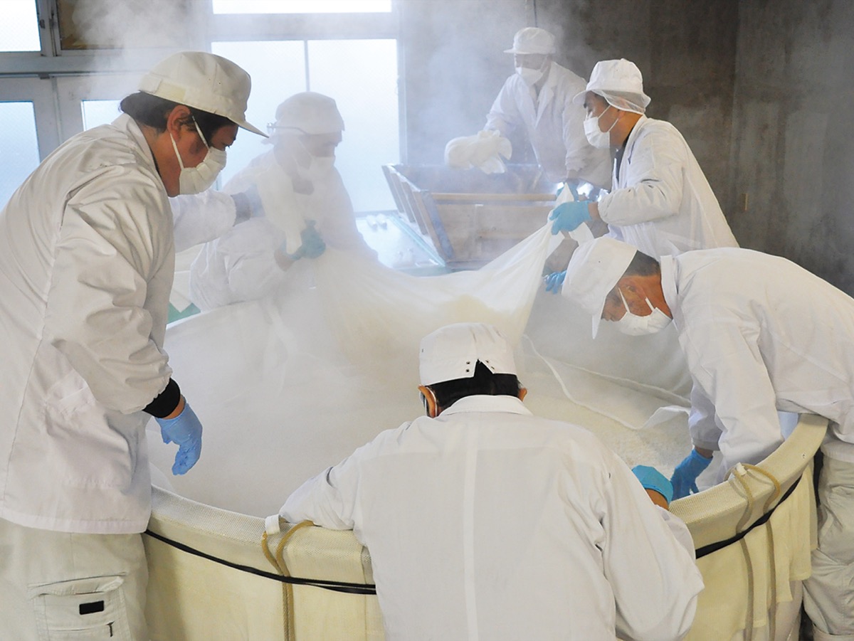 佐野社長によると日本酒の仕込みの時期は蔵元によって異なるそうだが、金井酒造では来年に向けての仕込みが10月から始まっている。同社では年内におよそ1万8000リットルを製造しており、この日は4回目の仕込み作業となった。