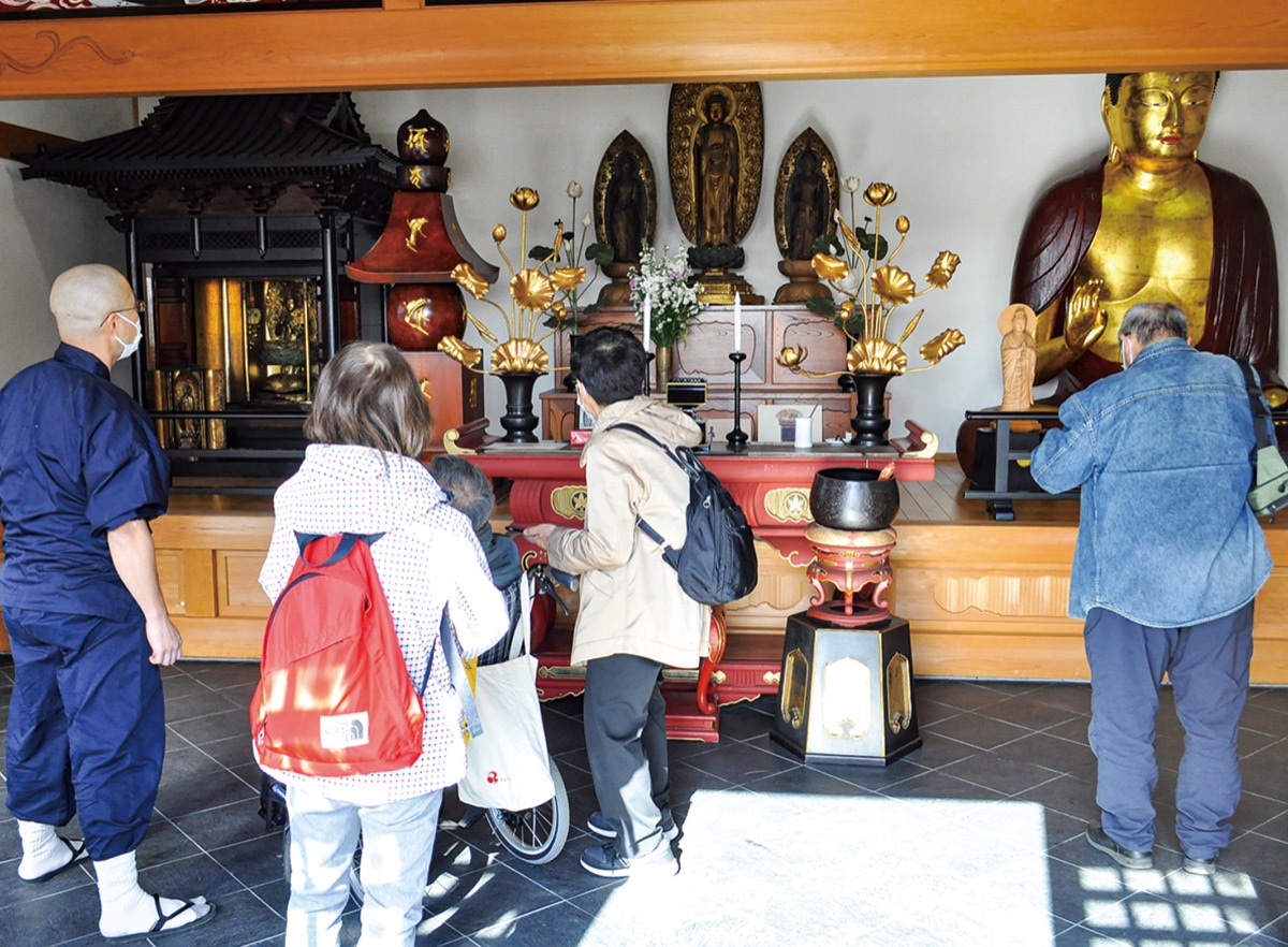 また、ここにほど近く、実朝を供養するために造立されたと伝えられている木造阿弥陀三尊立像を擁する金剛寺も、共に紀行で紹介されている。同寺では例年、市の文化財特別公開に合わせ同仏像を公開しているが、今年は県立金沢文庫に貸し出していたため、12月3日と4日に仏像を安置している建物を特別に開放。鈴木楚道住職が常駐し、拝観者への説明を行っていた。