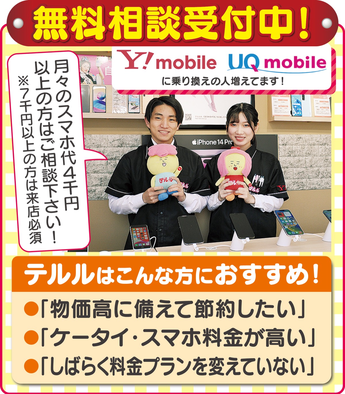 物価高を乗り切るために、月々のケータイ・スマホ料金を見直しませんか?「テルル秦野店」では、ドコモやau、ソフトバンク等6つのキャリアから最適な機種・プランを提案してくれる。