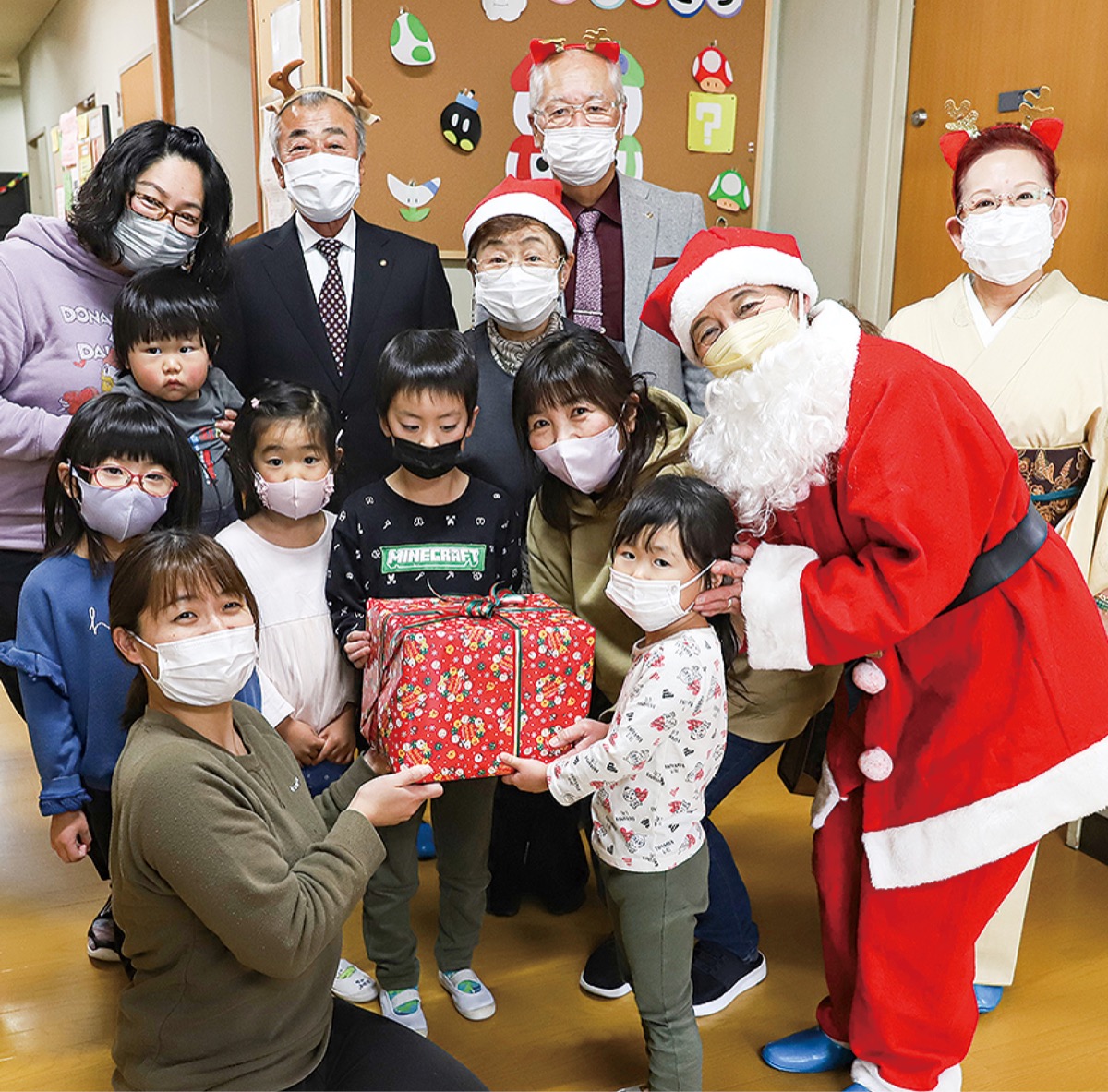秦野名水ロータリークラブ(古谷スミ子会長)は12月15日、市内の第一保育園、秦野さくらんぼ保育園、やまゆり保育園の3園に絵本を寄贈した。第一保育園を訪れた古谷会長は自らサンタクロースに扮し、同クラブの会員とともにプレゼントのラッピングが施された絵本を園児に手渡した。古谷会長は「幼児の頃に絵本に親しむことはとても大切なこと。たくさん読んでくださいね」と子どもたちに話しかけた。同園の中尾良美園長は「素晴らしいプレゼントを頂き感謝している。大切に使っていきたい」と話した。