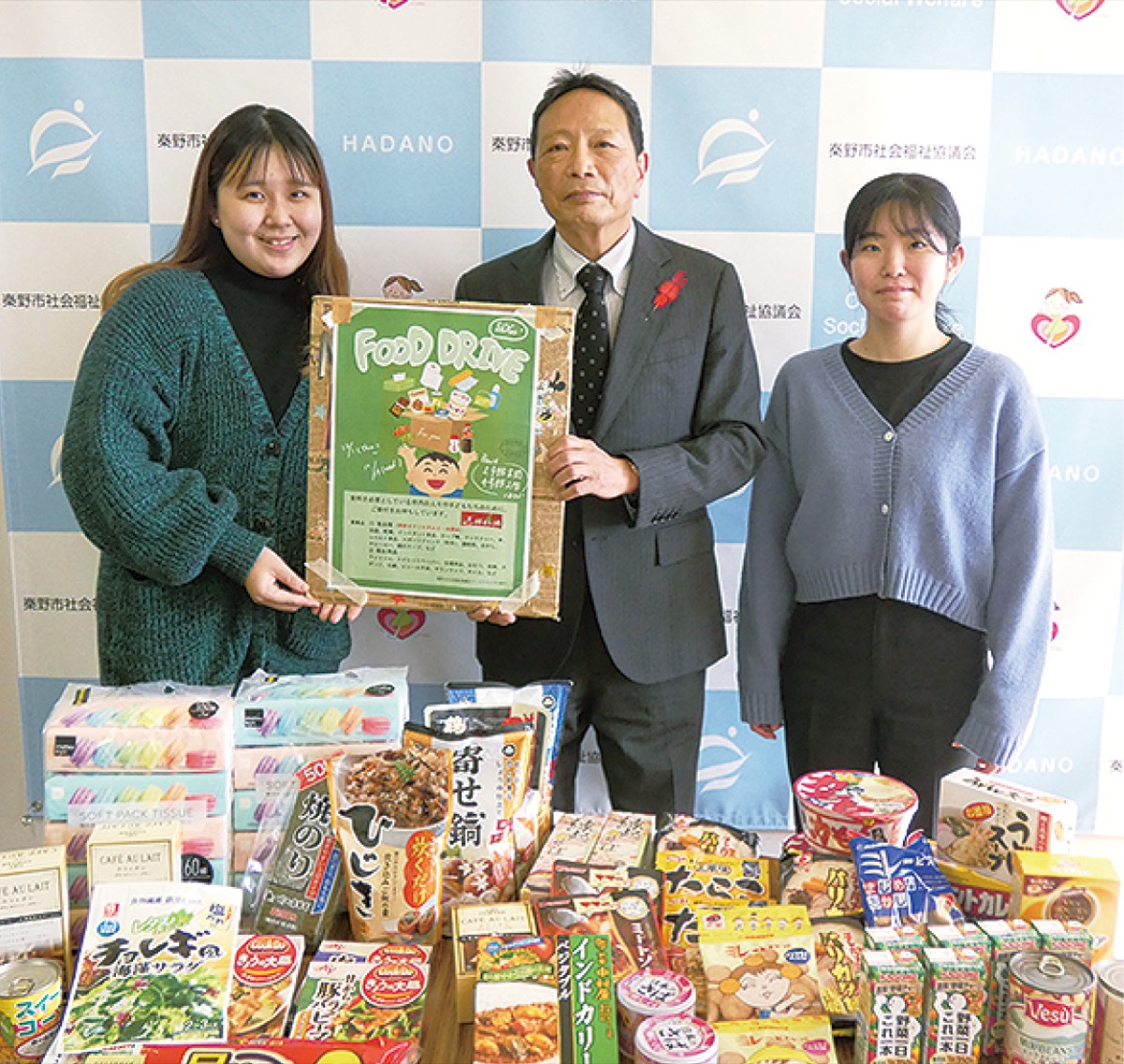 上智大学短期大学部の学生がフードドライブを行い、そこで集まった食料などを秦野市社会福祉協議会に寄付した。