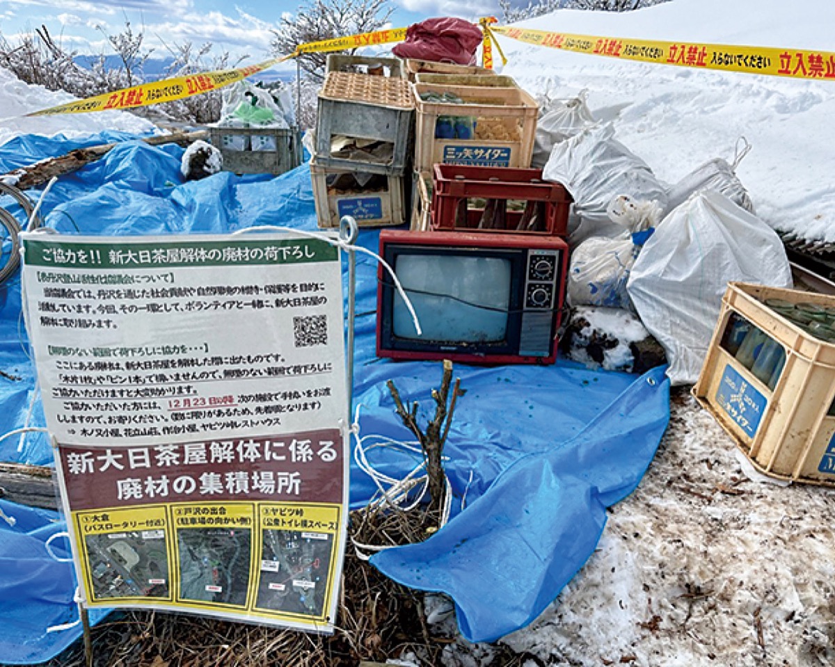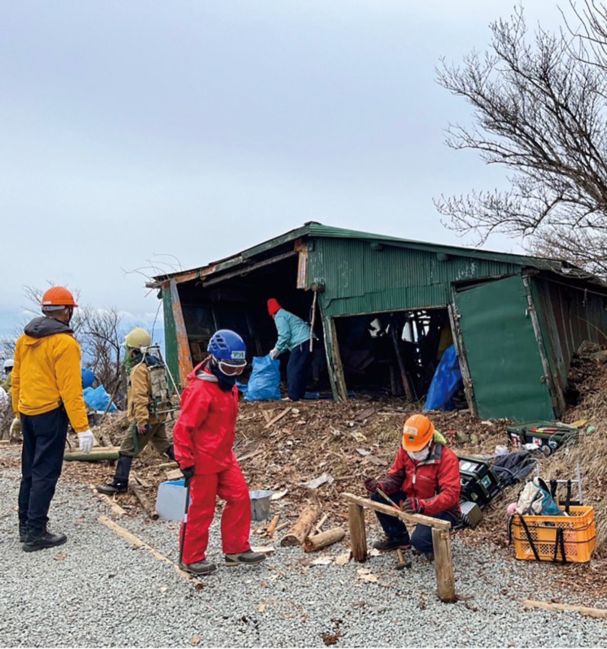表丹沢の稜線上にあり廃屋となっていた新大日茶屋を解体しようと、地元有志が立ち上がり、昨年11月に任意団体「表丹沢登山活性化協議会」(神野雅幸会長)が発足。ボランティアを募り、12月17日と18日の2日間にかけて、解体作業を行った。