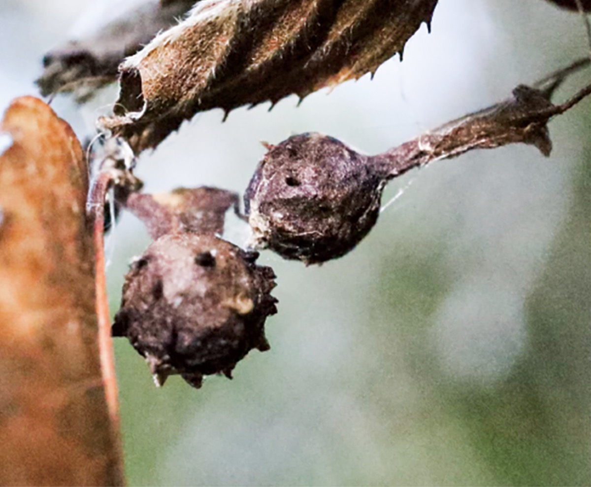秦野のホタルを守る会の会長で、東京蜘蛛談話会会員の吉田嗣郎(つぐお)さんは1月17日、千村の若竹の泉遊歩道付近でナゲナワグモの一種で珍しいマメイタイセキグモの卵嚢(卵の入った袋)を発見した。ナゲナワグモ類は他県では絶滅危惧種に指定されている貴重なクモ。