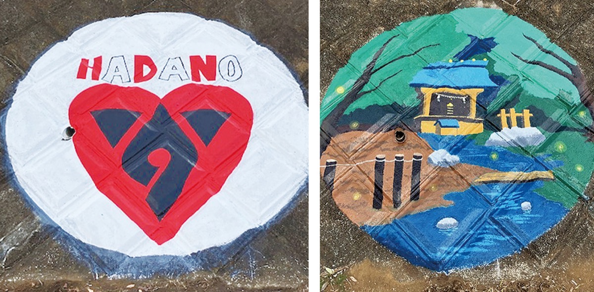 絵はすべて参加者のオリジナルで、秦野の市章や市の花のあじさい、市の鳥うぐいす、落花生など秦野にちなんだデザインが河川敷を飾る。