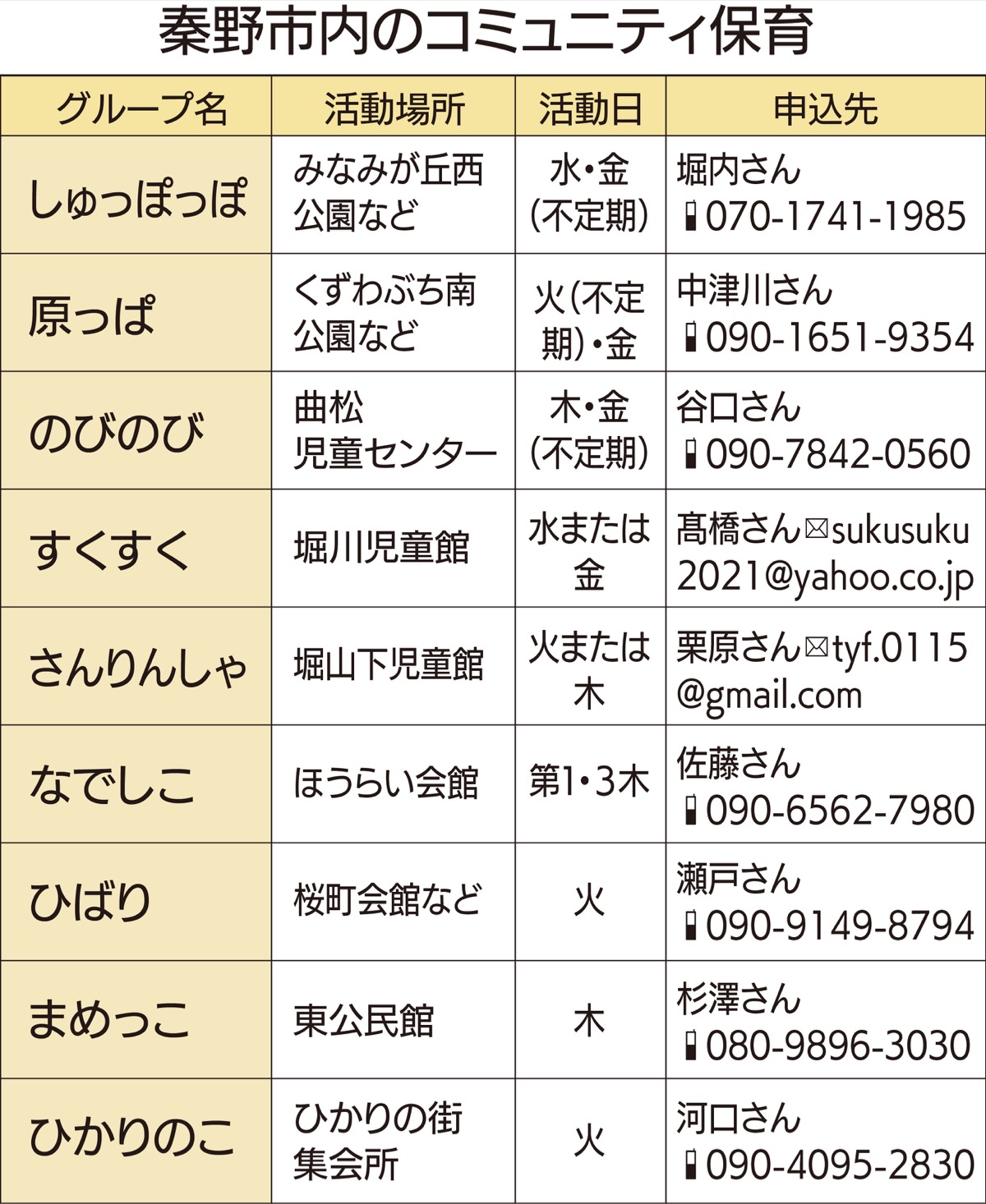 秦野市内の「コミュニティ保育」各グループは現在、4月からの参加者を募集している。