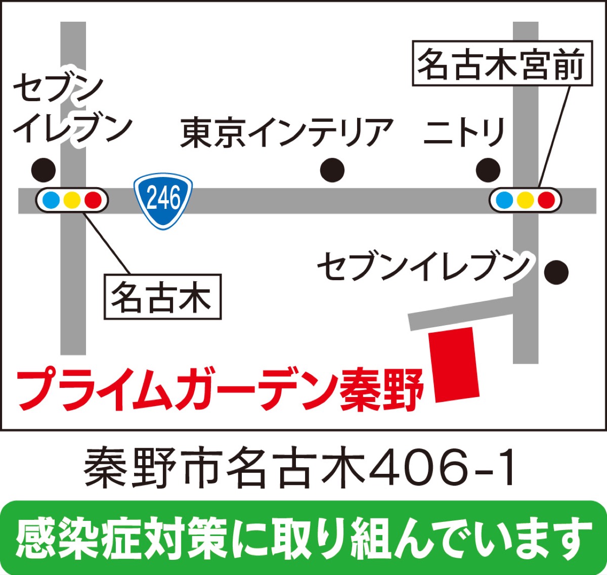 弘法山にほど近い同館は、秦野たばこ祭の時は花火の絶景スポット。屋上や南側の部屋から楽しむことができ、「ご家族様もお越しいただいています」とのこと。地元のイベントを楽しめるのも、同館ならではの特徴だ。「ご入居の前に、不安なことをぜひ気軽に聞いていただければ」と西園さん。感染症対策も徹底しているので、面会もOK(感染拡大状況により変更する場合あり)。まずは見学のお電話を。