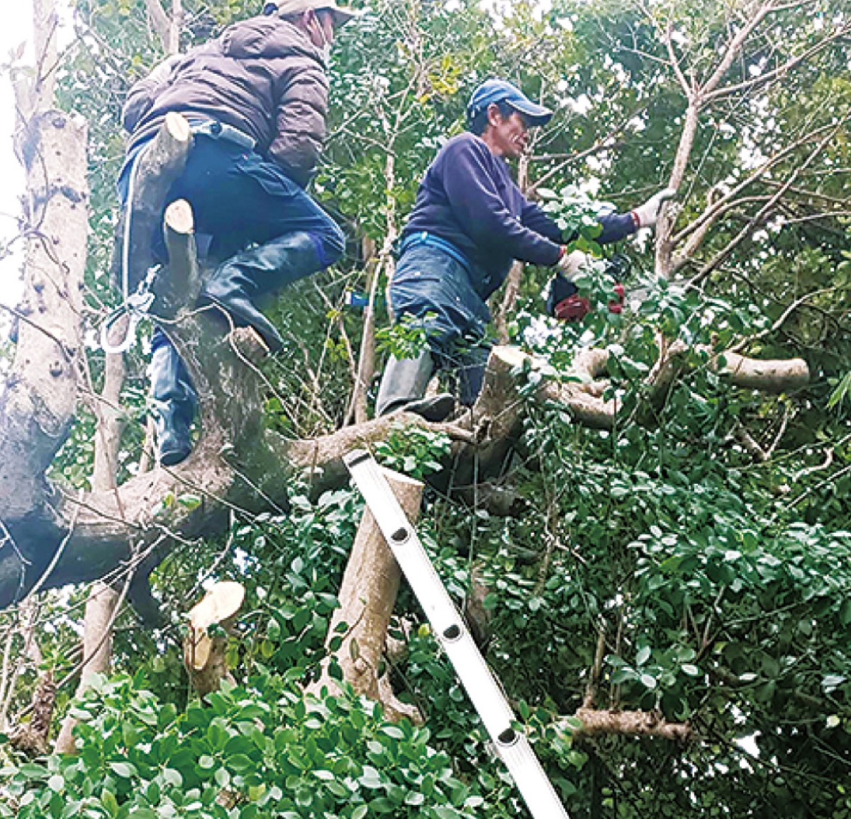 当日は同会のカンボジア人が中心となり、10本ほどの木を1日かけて剪定した。浅見会長は「費用も手間もかかるので、高齢の方が木の手入れをするのは大変だと思う。近所同士で助けあっていくことがとても大切」と話した。