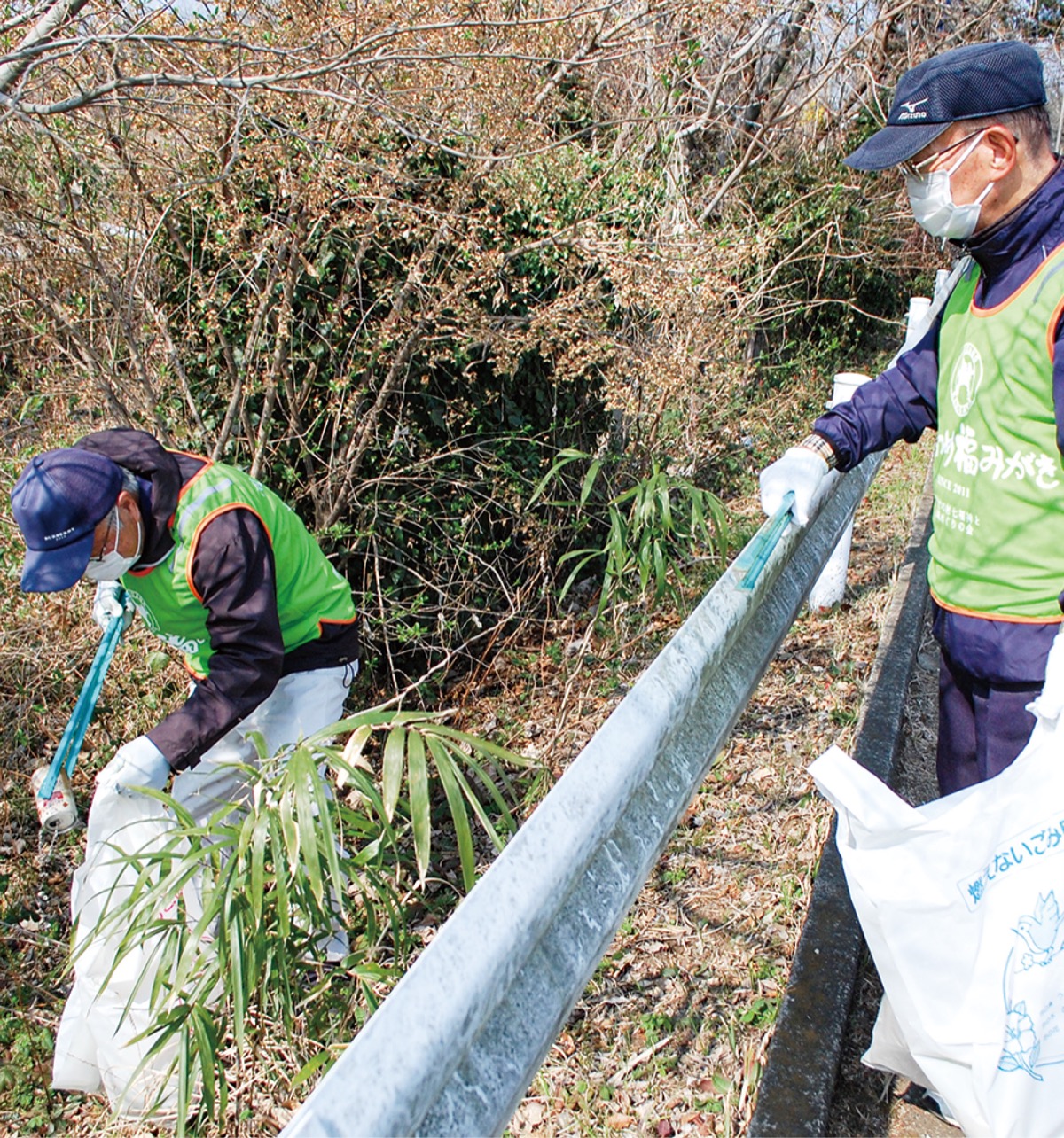 南はだの村七福神と鶴亀めぐりの会(栗原正行会長)と震生湖開発組合(清水尊組合長)、南地区自治会連合会(高橋徹夫会長)は3月9日、震生湖周辺の清掃活動を行った。同会らは協力し、年2回清掃を続けている。この日もおよそ15人が参加し、トングやゴミ袋を手に周辺の空き缶やペットボトルなどを丹念に集めて回った。栗原会長は「桜のシーズンを迎え、ハイカーが増える。気持ちよく歩いてもらえるよう、きれいにしたい」と話した。
