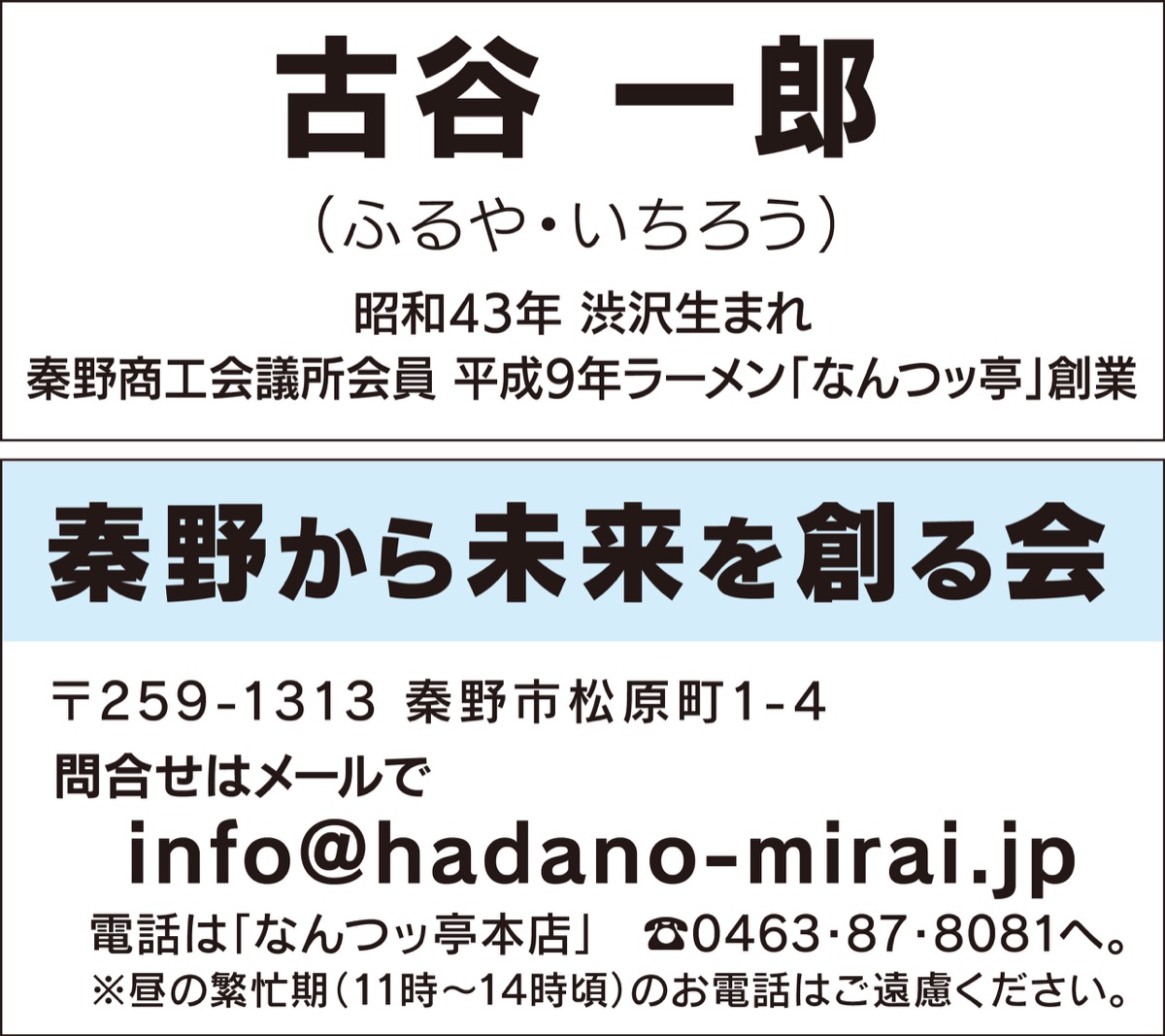 今、政治家に求められる資質は、世界における日本の状況を把握できること、今の日本国内の状況や政治的な構造を理解していること、秦野市の状況を客観的に見られること。そして、工夫を凝らし知恵を絞り、市民の暮らしの充実を最優先に考えられる。そんな政治家を、県政や市政に送り込む必要性を強く感じています。景気が良く、市民が安心して暮らしている時期ならば、無能な政治家を並べていても生活に影響は少ないでしょう。でも今は、やるべき事、取り組むべき事の優先順位を間違えてはいけない、大切な時期だと強く感じています。