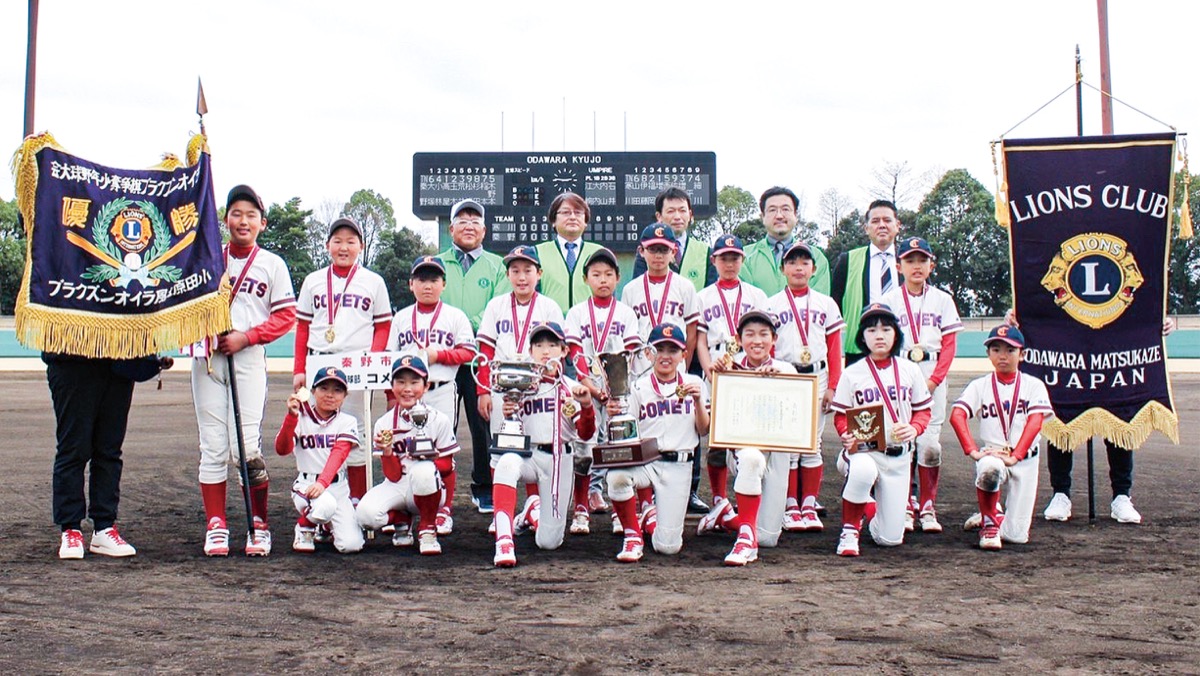「第27回小田原松風ライオンズクラブ旗争奪少年野球大会」の決勝戦が、3月12日に小田原球場で開催。秦野少年野球部コメッツが寒川エースを10対0で破り優勝した。