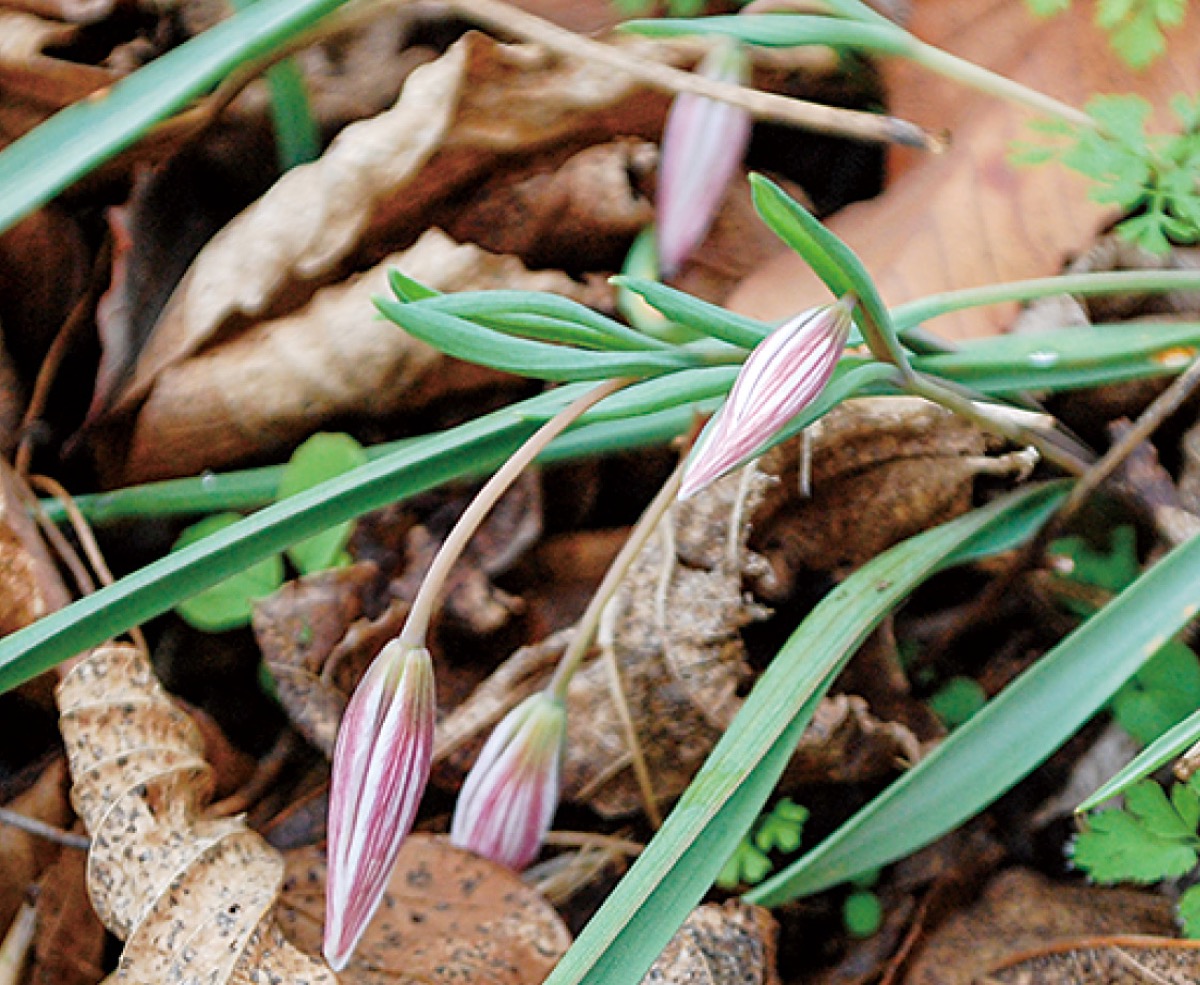 南が丘の丘陵に広がる立野緑地で、春の山野草が咲き始めた。この緑地には様々な山野草が群生していて、春から夏にかけて花のシーズンを迎え、一斉に花を咲かせる。同地域の保全活動を続けている「立野緑地山野草会」(田中安志会長)では、訪れた人が花の種類を知ることができるよう、山野草の名前を記した看板やプレートなどを多数掲げている。