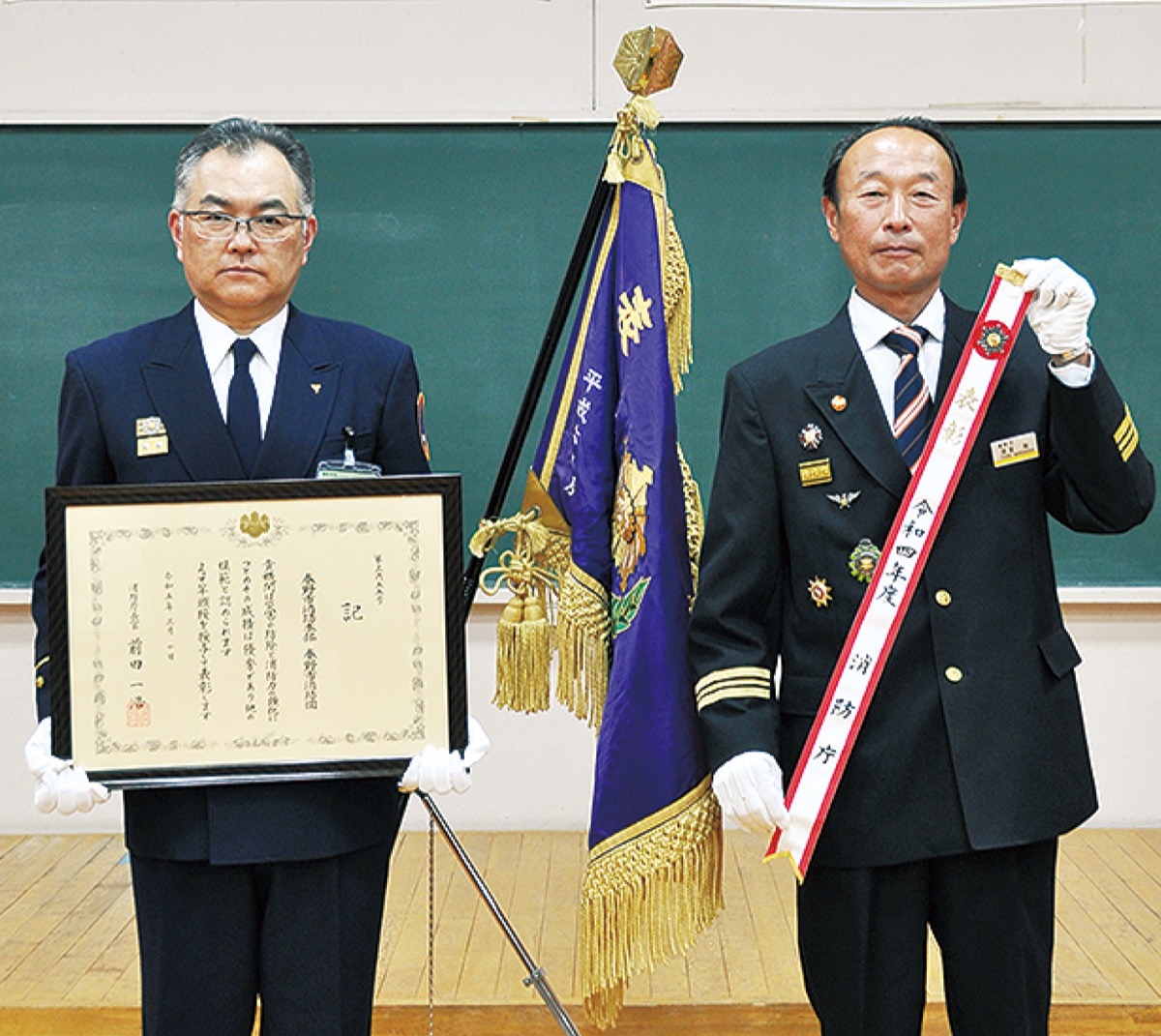 ▽消防庁長官表彰「永年勤続功労章」=小山田誠二(三屋)、向原量一(小簔毛)▽神奈川県知事表彰「永年勤続優良消防団員(30年)」=向原量一▽(公財)日本消防協会会長表彰「精績章」=久保寺哲夫(菩提)▽(公財)日本消防協会会長表彰「勤続章」=向原量一▽(公財)神奈川県消防協会会長表彰「功績章」=須藤政一(堀西)、府川寛幸(菖蒲)、関野信秀(曲松)、山本剛以(並木町)▽(公財)神奈川県消防協会会長表彰「勤続章(20年)」=関野信秀、中戸川茂之(柳町)、仲戸川智之(堀山下)、高橋淳(名古木)、梶山哲広(寿町)、横溝一浩(落合)、宇山一徳(寿町)、山田武弘(河原町)、臼井史行(今泉)、山本茂信(西大竹)、鈴木剛(堀西)、前場建郎(三廻部)▽(公財)神奈川県消防協会秦野支部長表彰「優良章」=坂井光夫(戸川)、安藤和仁(平沢)、金子宏明(尾尻)、加藤隆弘(西田原)、北村和宏(堀山下)、清水淳平(本町)、水本洋一(曽屋)、植村功(下大槻)、大湯哲之介(渋沢)、増田博也(八沢)