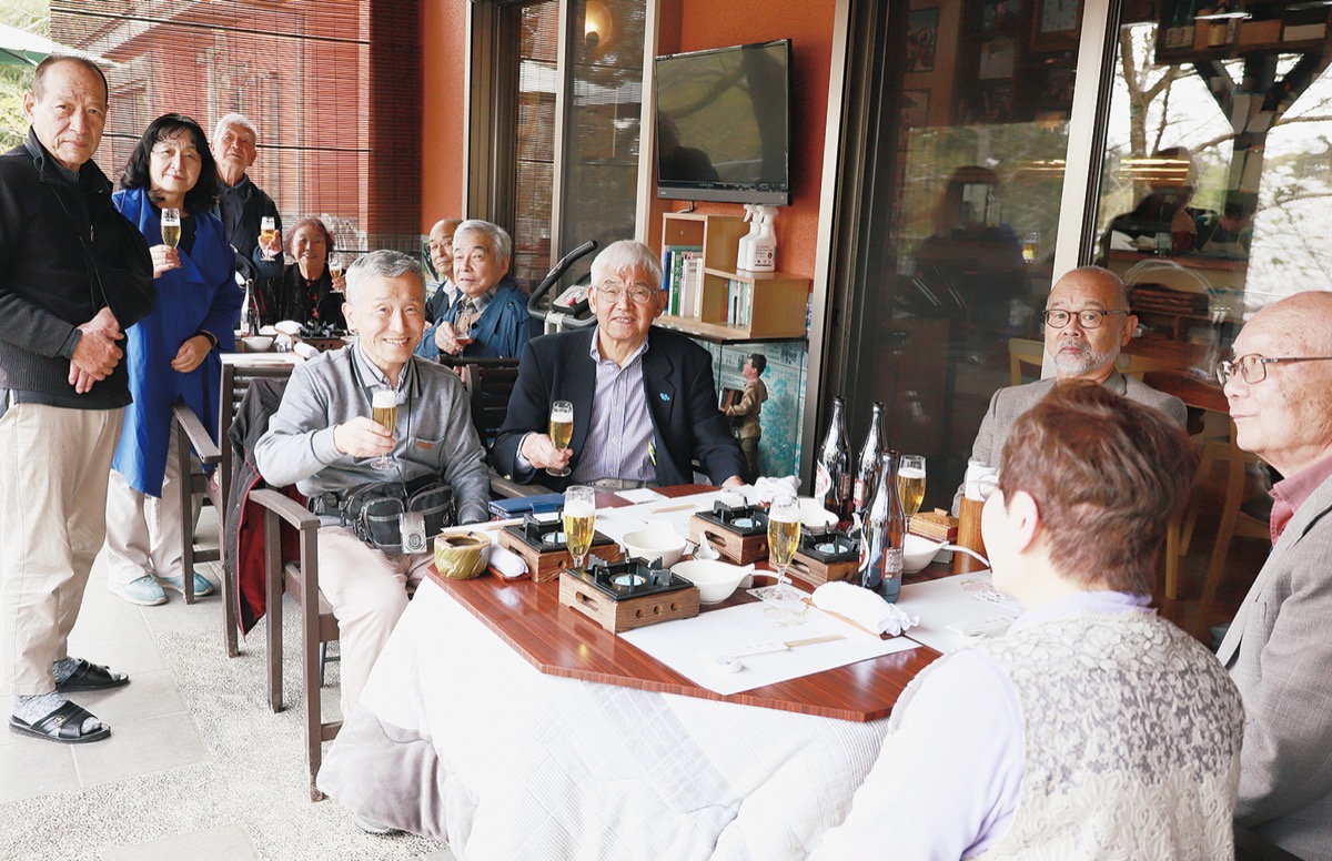 寺山の手打ちそば石庄庵に3月29日、福島県立福島商業高校同窓会関東支部(原山伸之会長)の会員が集い、懇親を図った。