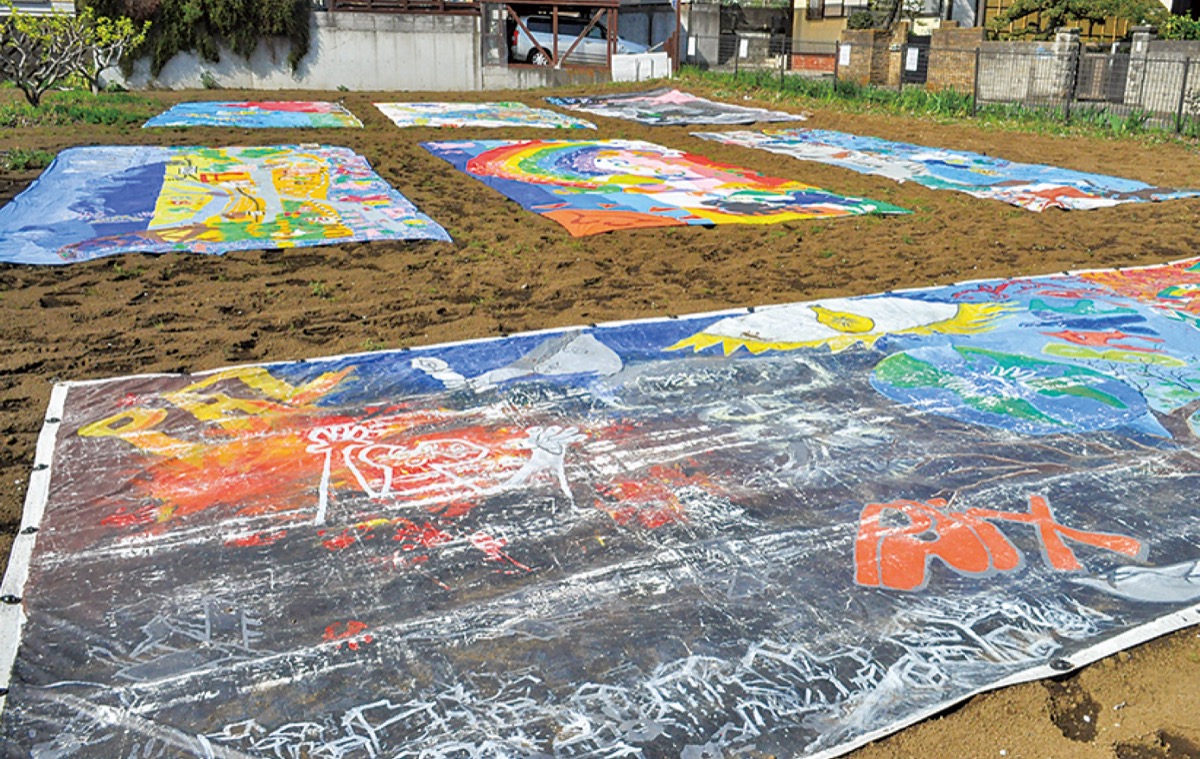 はだのキッズゲルニカ展が4月1日から始まり、30日(日)までNITTANパークおおね(おおね公園)西側(東海大学側)入口前の果樹園をメイン会場に、市内各所で行われる。市民有志による実行委員会(野村剛之委員長)主催で、世界の子どもたちが描いた22点の絵が展示されている。