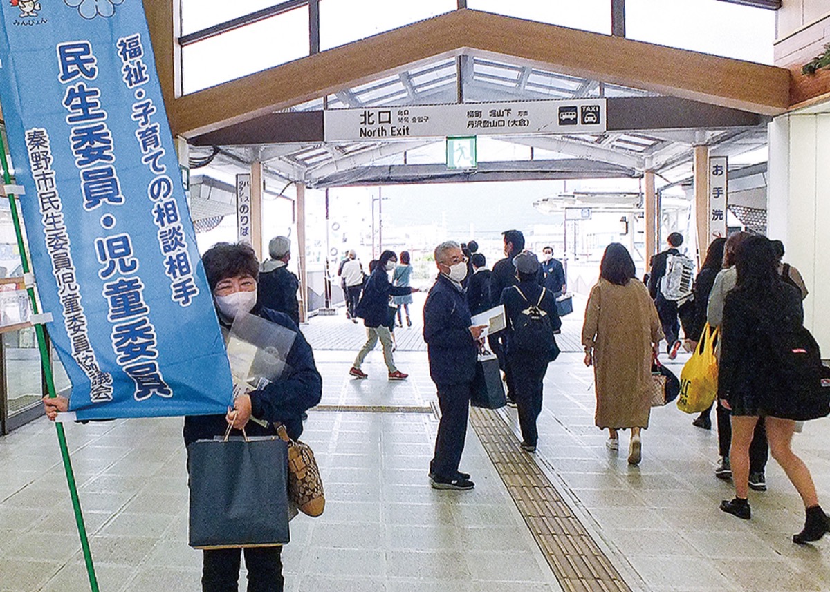 秦野市内4駅で5月12日、秦野市民生委員児童委員協議会が「民生委員・児童委員の日」にあわせてPR活動を行った。