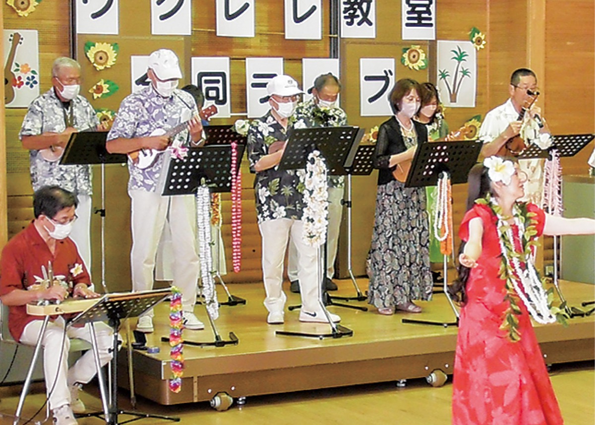 hadanoホアロハ ウクレレサークルが6月4日、「ウクレレ教室第2回合同ライブ」を本町公民館で開催。初開催の昨年を超える71人の来場者で賑わった。