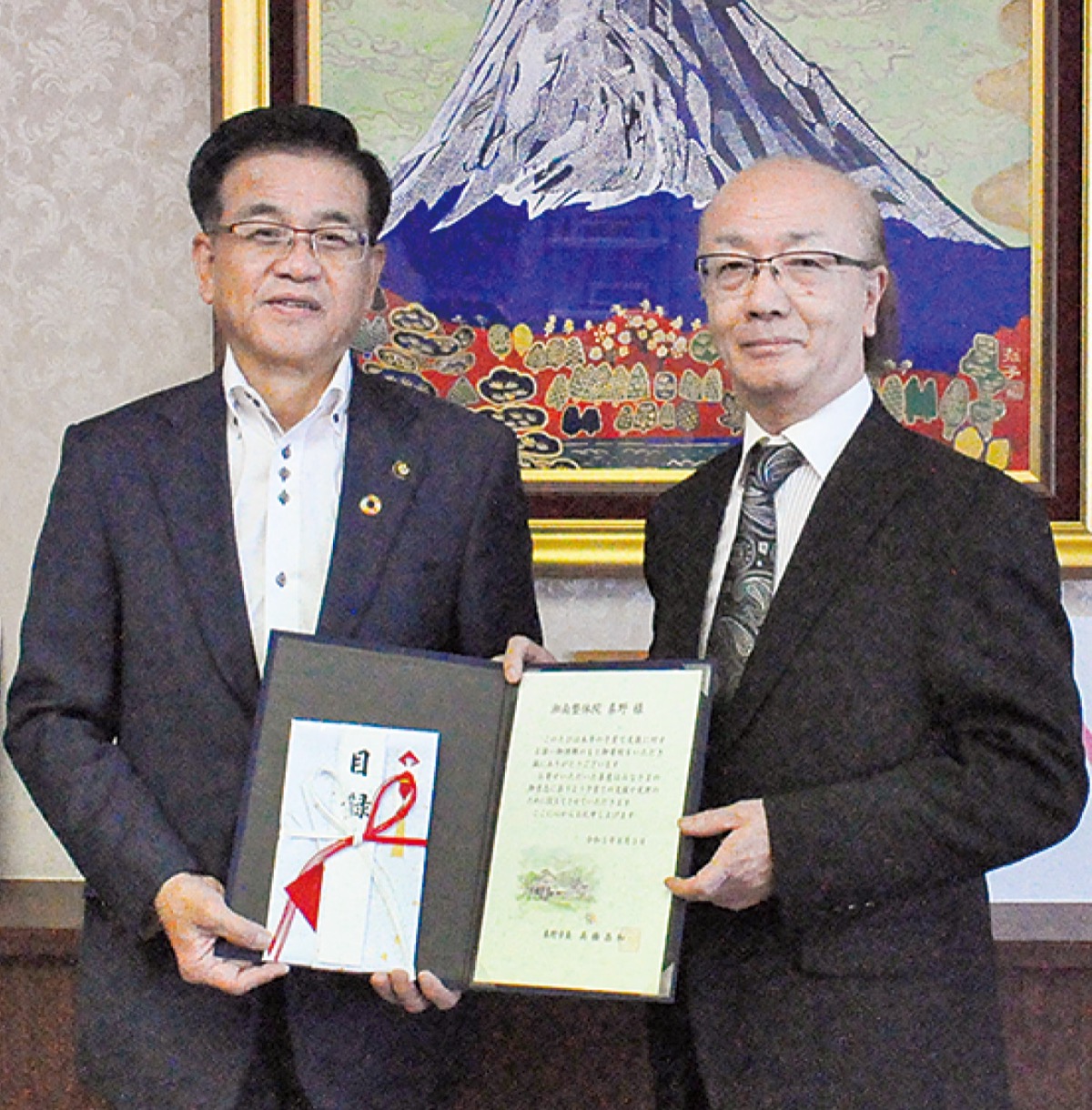 湘南整体院秦野(本町1の1の1)を運営する有限会社エール代表取締役の源平邦康さんが8月3日、秦野市に現金3万円を寄付した。