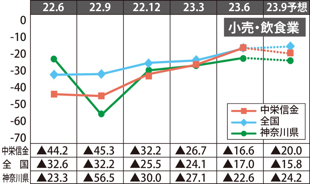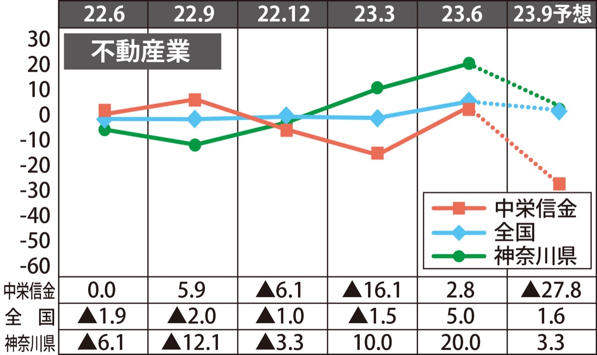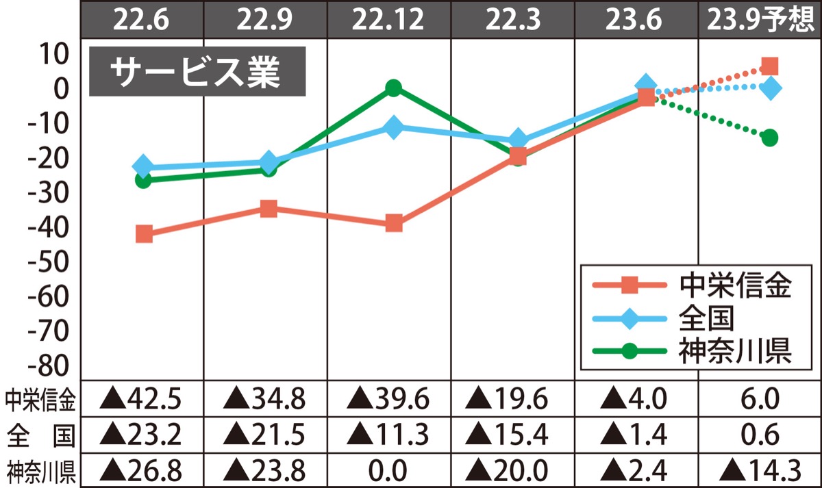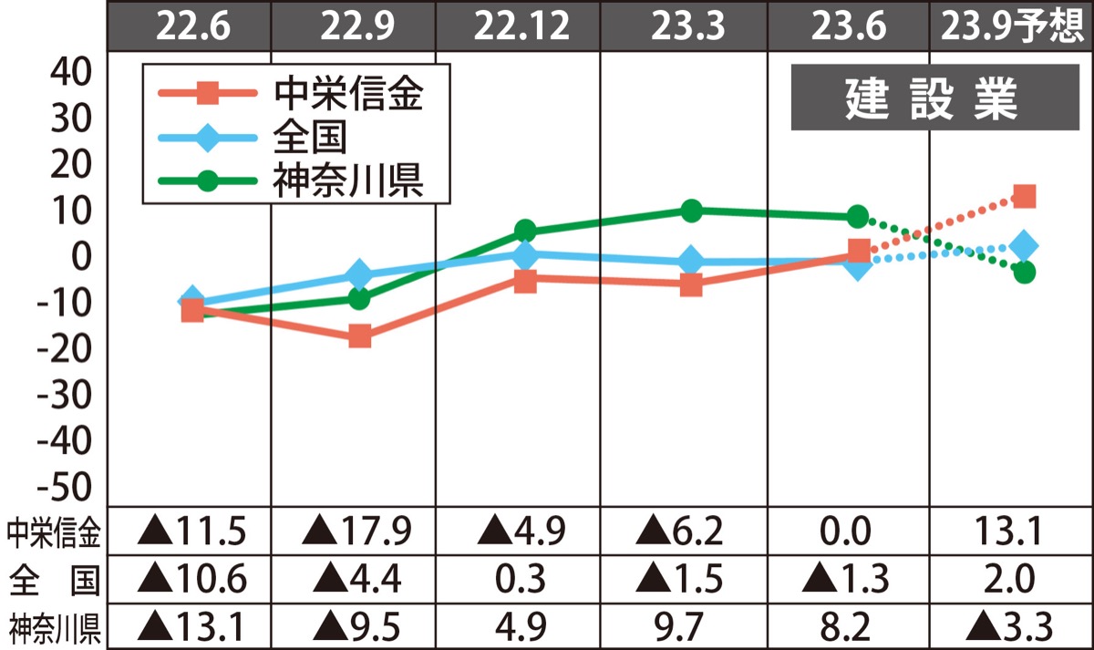 来期予想は2・5ポイント小幅改善の▲3・1。売上額D.I.は3・7ポイント改善の8・0、収益D.I.は1・6ポイント小幅改善の▲3・3の見通し。