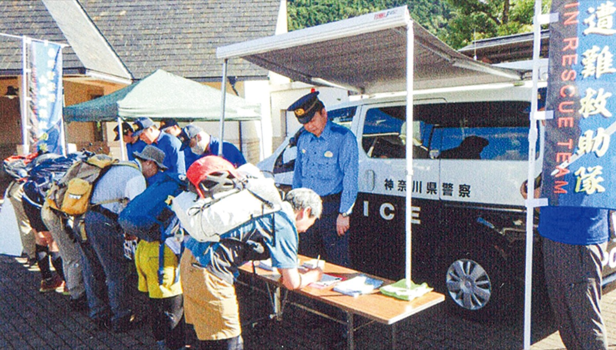 秦野署管内の山岳遭難件数(8月4日時点)は27件28人(昨年同時期12件12人増)。うち3人が死亡している。早川直希地域課長によると「ベテランの方の事故が多い」と話す。特に最近は猛暑や急激な天候の変化なども多く「十分な装備と体調管理、登山届の提出は必須」だという。救助を要請する場合はスマホ等から110番や119番通報で大体の位置がわかるそうで「モバイルバッテリーの携行も重要です」と話している。