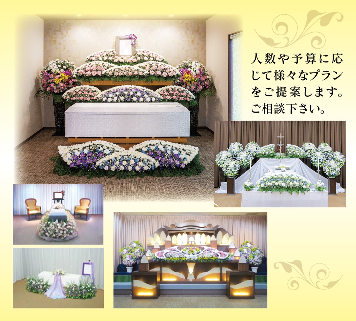 また、家族葬のほか、規模や要望に合わせて6カ所での葬儀が可能。100人以上の大規模な社葬から一般葬、家族葬、直葬など、神式・仏式・宗教、宗派問わず、幅広く対応している。秦野火葬場隣なので、移動手段の手配をする必要もなくスムーズだ。