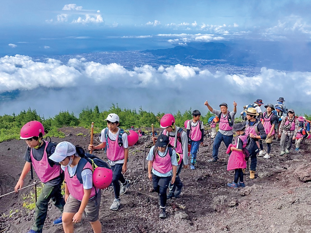 8月2日には、今度は富士登山へ。こちらも地域住民の協力により例年行われている伝統事業で、6年生から希望者を募って実施された。