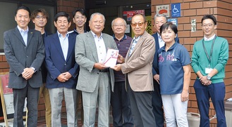 秦野のまちづくりを考える団体「神楽会」(矢野一博会長)が10月4日、社会福祉法人寿徳会(久保谷勤理事長)が運営する知的障害者支援施設「松下園」を訪問し、寄付金を手渡した。