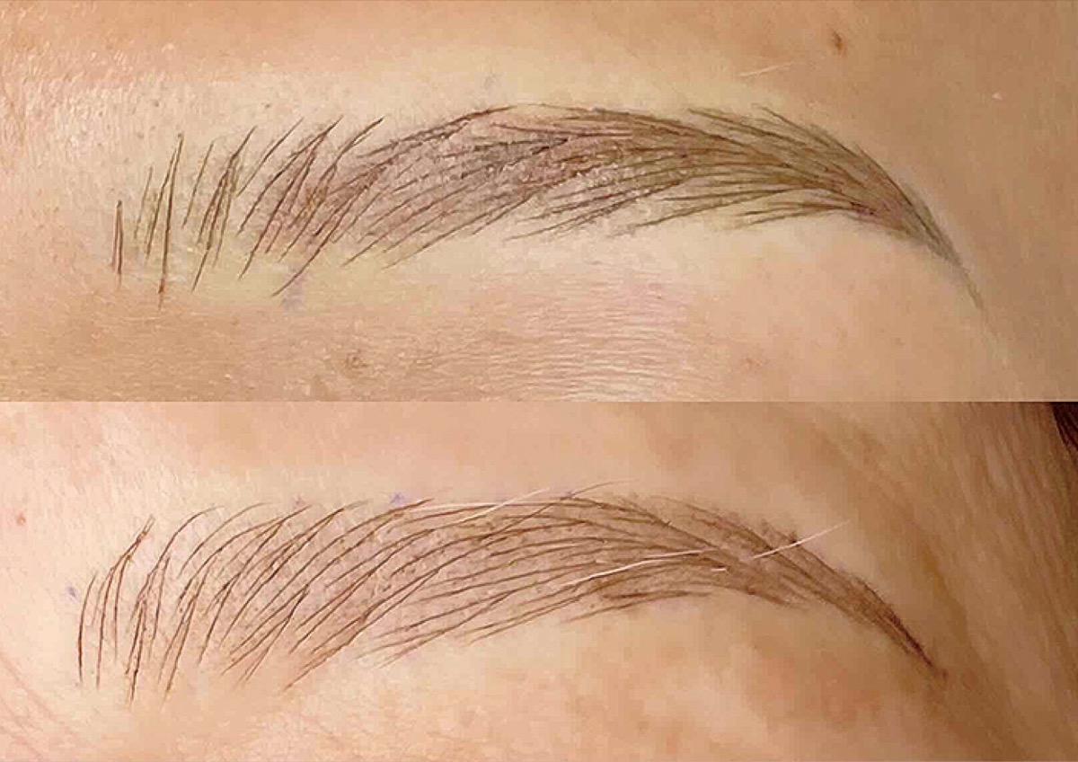 同施術は皮膚のごく浅い部分に針で色素を入れて染色。先の脱毛症状のケアに加え、忙しい人の時短や、水で落ちないため、スポーツや入浴の対策として施術される。