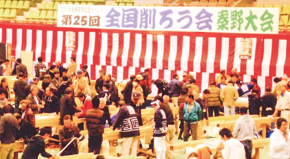秦野市では2010年5月に開催を控えた「第61回全国植樹祭」の記念イベントとして、同年2月に「第25回全国削ろう会秦野大会」を初めて招致・開催。会場の秦野市総合体育館には、全国から集まった匠の技を見ようと、2日間で1万2千人が来場した。