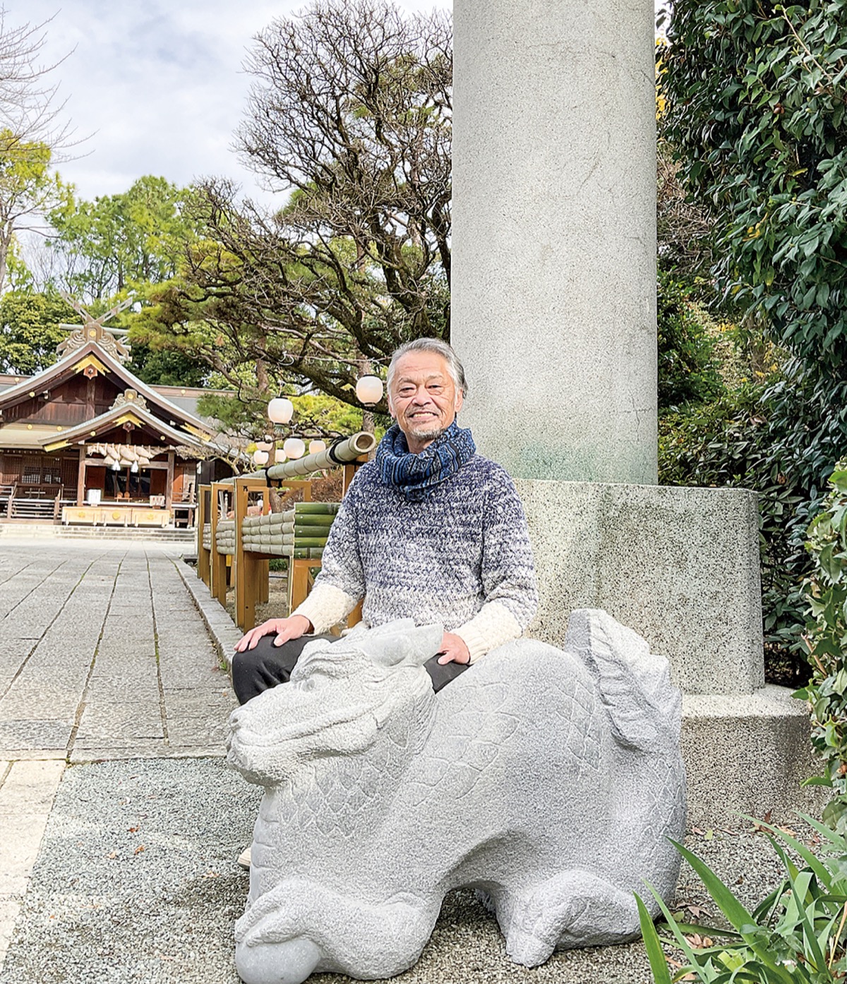石の彫刻作品の制作に取り組んでいる西巻さん。干支の作品は2013年から手掛け、毎年、同神社に奉納されている。西巻さんは11年に血液のがんである悪性リンパ腫に罹患。そのことを知った同神社の草山宮司が「一年にひとつずつ干支の彫刻を作って、必ず十二支を完成させて欲しい」と依頼し、同神社への奉納が始まった。
