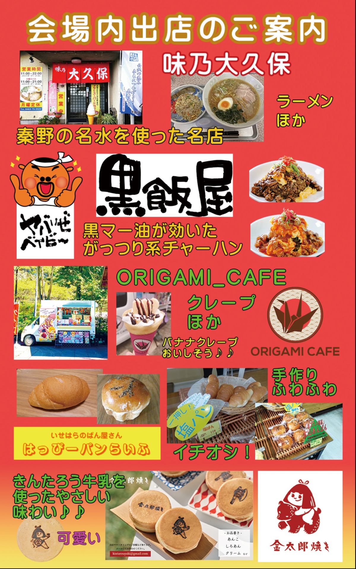 会場では午前10時から11時30分までお焚き上げが行われるほか、キッチンカーなども出店。味乃大久保のラーメンや、黒飯屋のチャーハン、ORIGAMI CAFEのクレープ、はっぴーパンらいふのパン、きんたろう牛乳を使った金太郎焼きなどを販売。また、今年元日に発生した「令和6年能登半島地震」の復興支援義援金募金箱を会場に設置する。