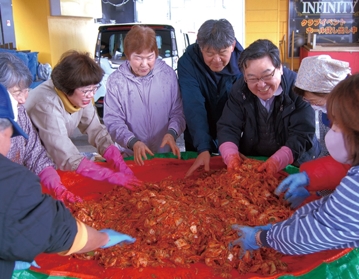 初めて活動に参加したという女性は「あっという間にキムチができて面白かった」と感想を話した。続いて行われた新年会では、作ったキムチなどを食べ交流。福森会長は「このキムチを食べて、皆さん今年一年、ご活躍いただければ」と話した。また、福森会長の呼び掛けで能登半島地震の被災者を支援する義援金の寄付も実施。集まった総額3万円の義援金は、秦野市役所を通じて被災者支援に充てられる。