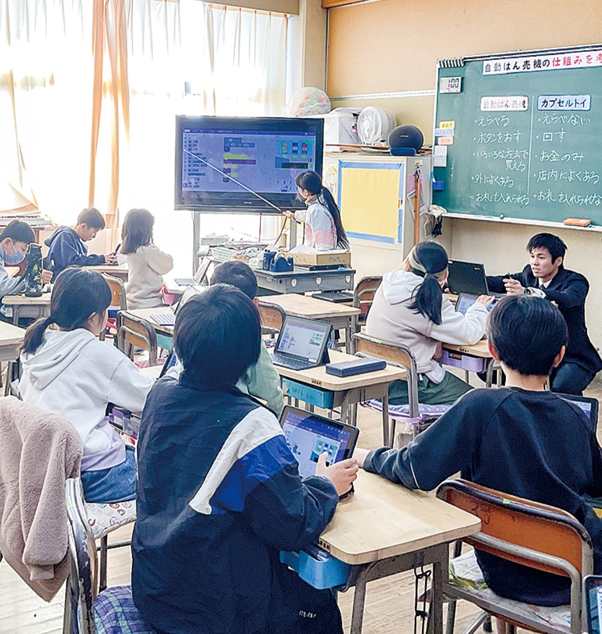 同クラスの小澤健心さんは「自販機の題材は初めてだったけれど分かりやすかった。もっと色々なプログラミングに挑戦したい」と感想を話した。
