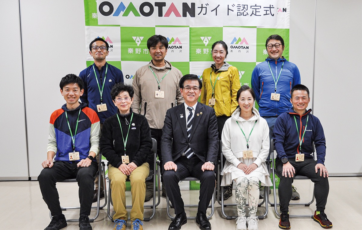 秦野市は表丹沢の”本物の魅力”を来訪者に伝える役割を担う、「OMOTANガイド」を認定する制度を新設。秦野市役所本庁舎で2月1日に認定式が行われ、高橋昌和市長からガイドを務める11人に認定証が手渡された。