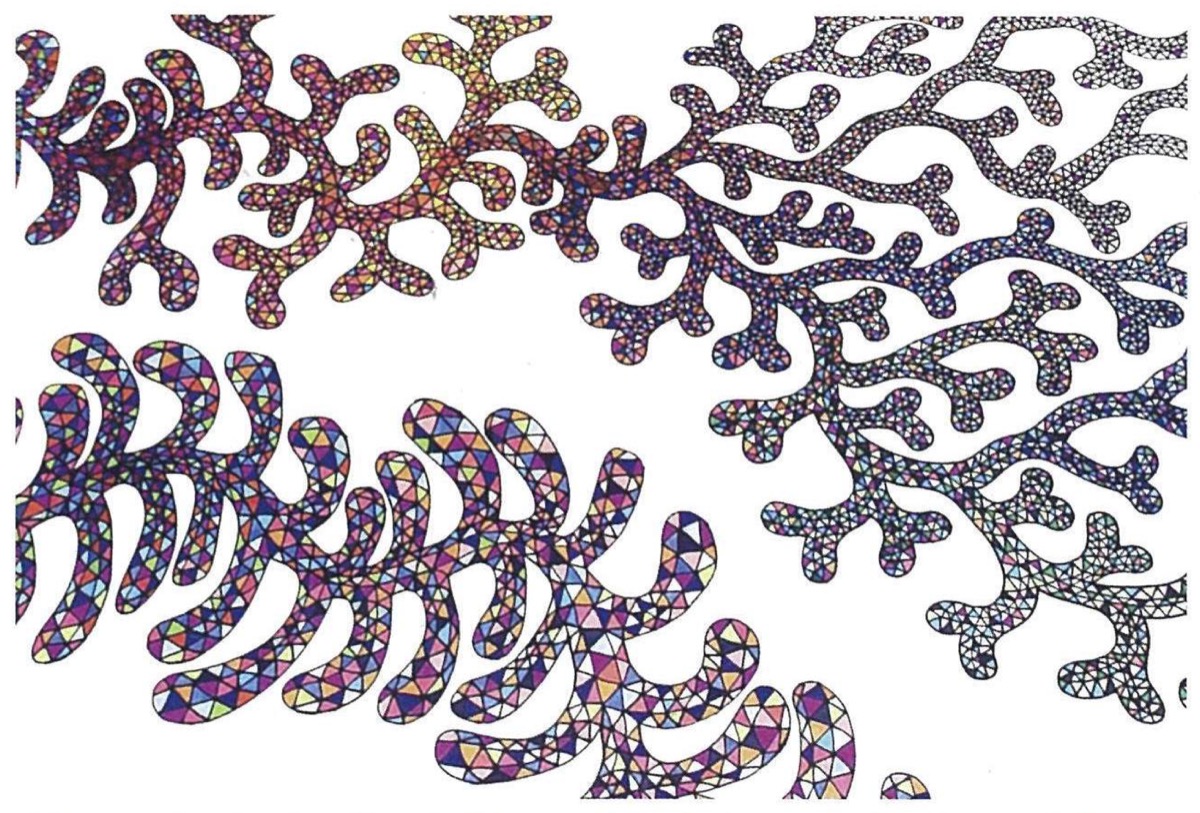 ヤマモトアカネ個展 「三角生物系統樹」は5月1日(水)から5日(日)まで開催。「サンカクな生き物」の始まりと進化が描かれた作品が展示されている。