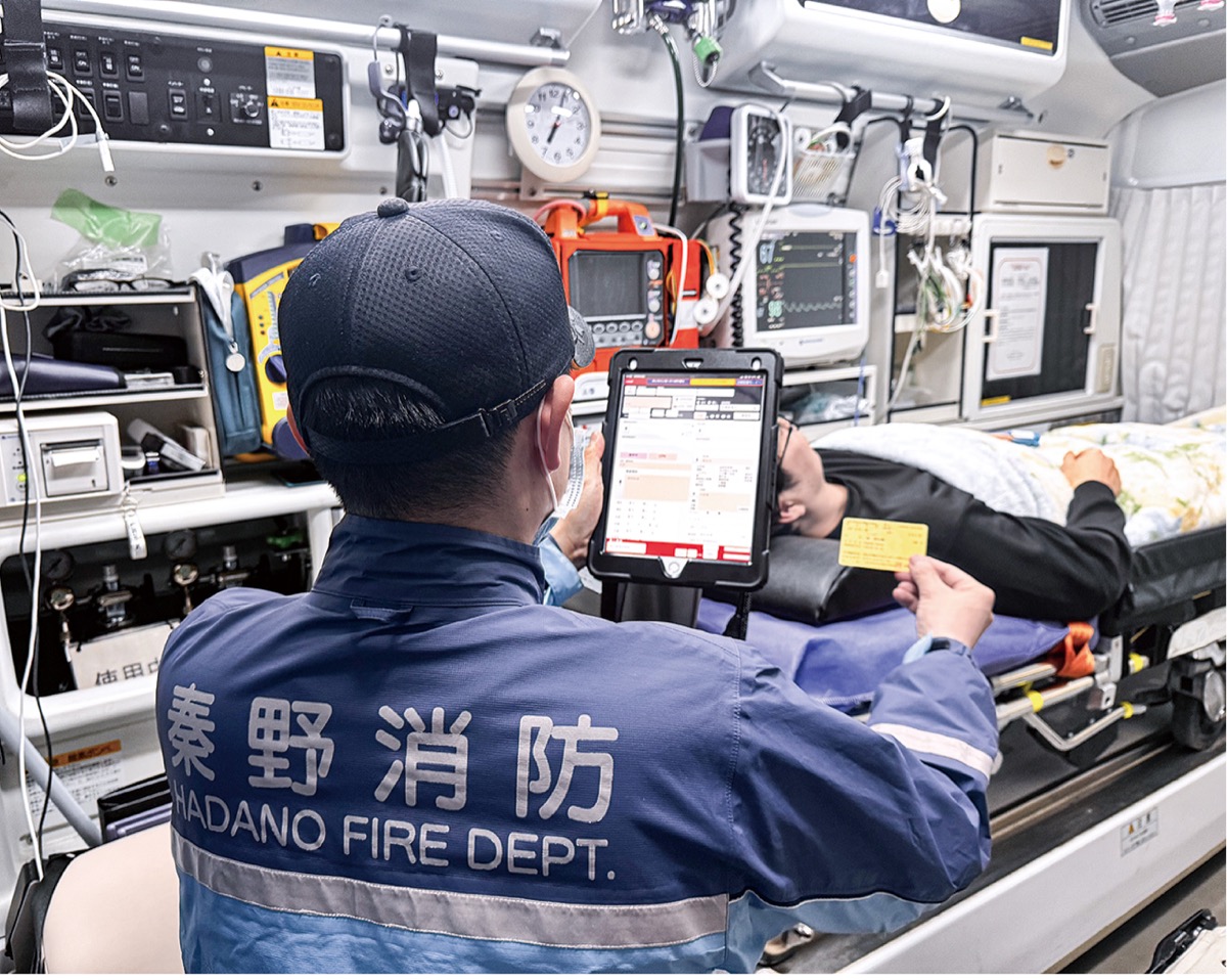 秦野市消防は救急活動の効率化を図るため、このほど「救急医療支援システム(NSER Mobile)」を本格導入した。昨年度の実証実験を経て踏み切ったもので、秦野市内全救急隊6隊に配備している。
