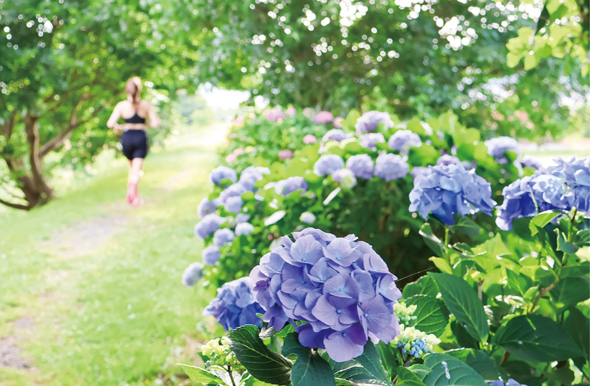 鶴巻地区にある大根川と善波川沿いの遊歩道「鶴巻あじさい散歩道」は秦野のアジサイスポットの一つ。地域住民のボランティアによって整備され、青や赤紫のアジサイが散歩する人々の目を楽しませている=写真(6月8日撮影)。他にもカルチャーパーク水無川沿いや秦野戸川公園、弘法山などがあり、鮮やかなアジサイを見ることができる。