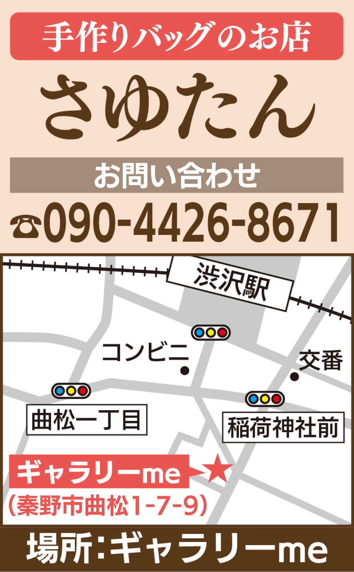 「手作りバッグのお店さゆたん」が渋沢のギャラリーme内にオープンする。7月1日(月)から7日(日)の10時半から15時まで営業(8月以降も毎月1日から7日営業)。着物や帯、畳のへりを使ったトートバッグやショルダーバッグ、小物ほか、手作り品を販売。オーダーメイドの相談も可。
