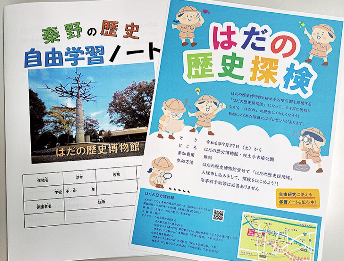 また、このほかにも秦野の歴史について学べる「自由学習ノート」を配布している。夏休みの自由研究などに役立ててもらえるようにと作成されたもので、小中学生向けでやりがいのある内容に仕上がっている。月曜日休館。開館時間は午前9時から午後5時(最終入館4時30分)。問い合わせは同館【電話】0463・87・5542へ