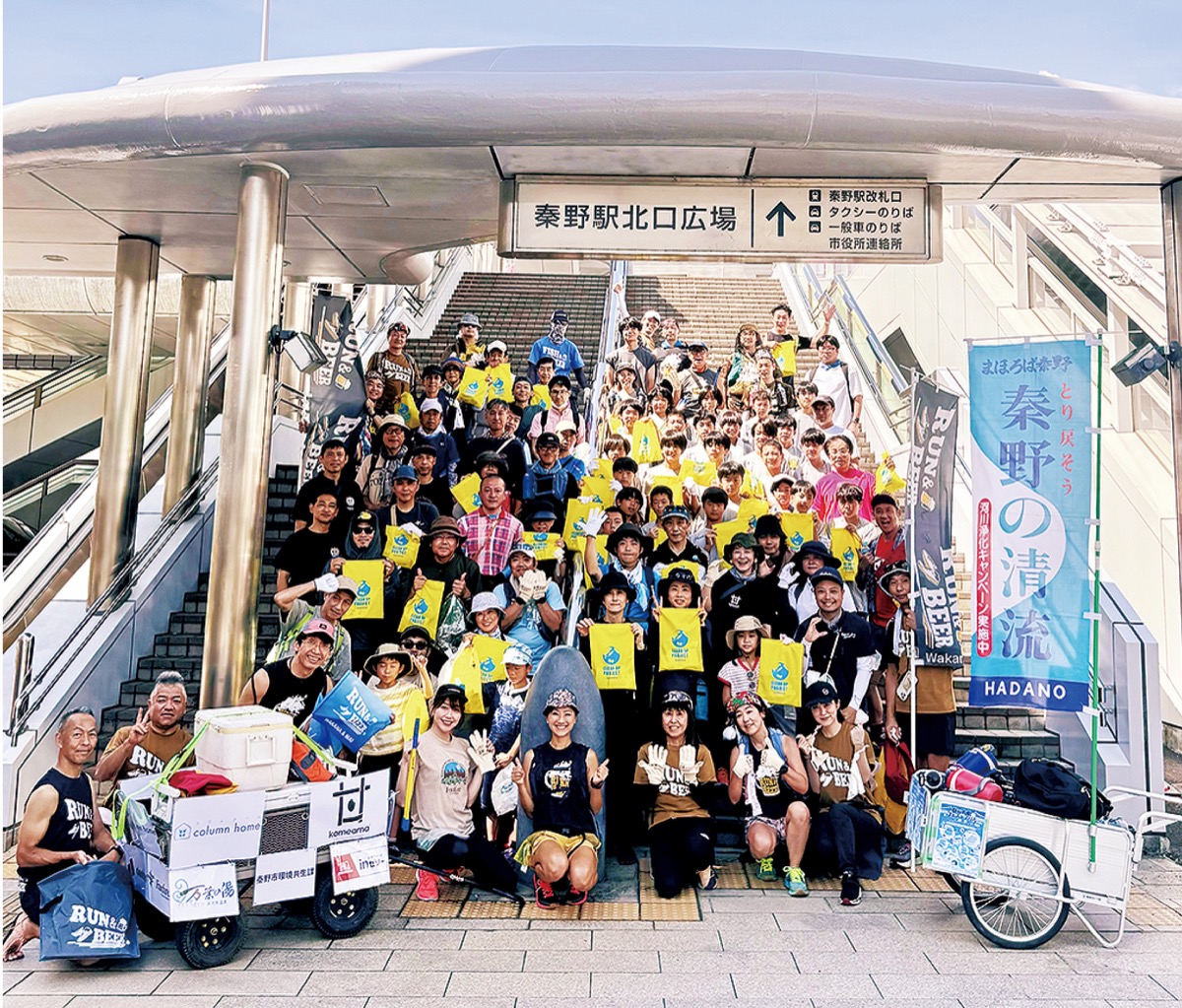 「その一歩から街を綺麗に―」。そんな思いが今年も繋がった。水無川を秦野駅前から秦野戸川公園手前までの約7キロにわたり歩きながら清掃する「クリーンストライド」が7月21日に行われた。この清掃活動を企画したのは、はだのブランドアンバサダーの立石純子さんをはじめ、タレントの福島和可菜さんとランニングチームのRUN&BEERメンバー。秦野市環境共生課、コラムホーム、片倉商店、komeama、たべれっとほか協賛・協力。
