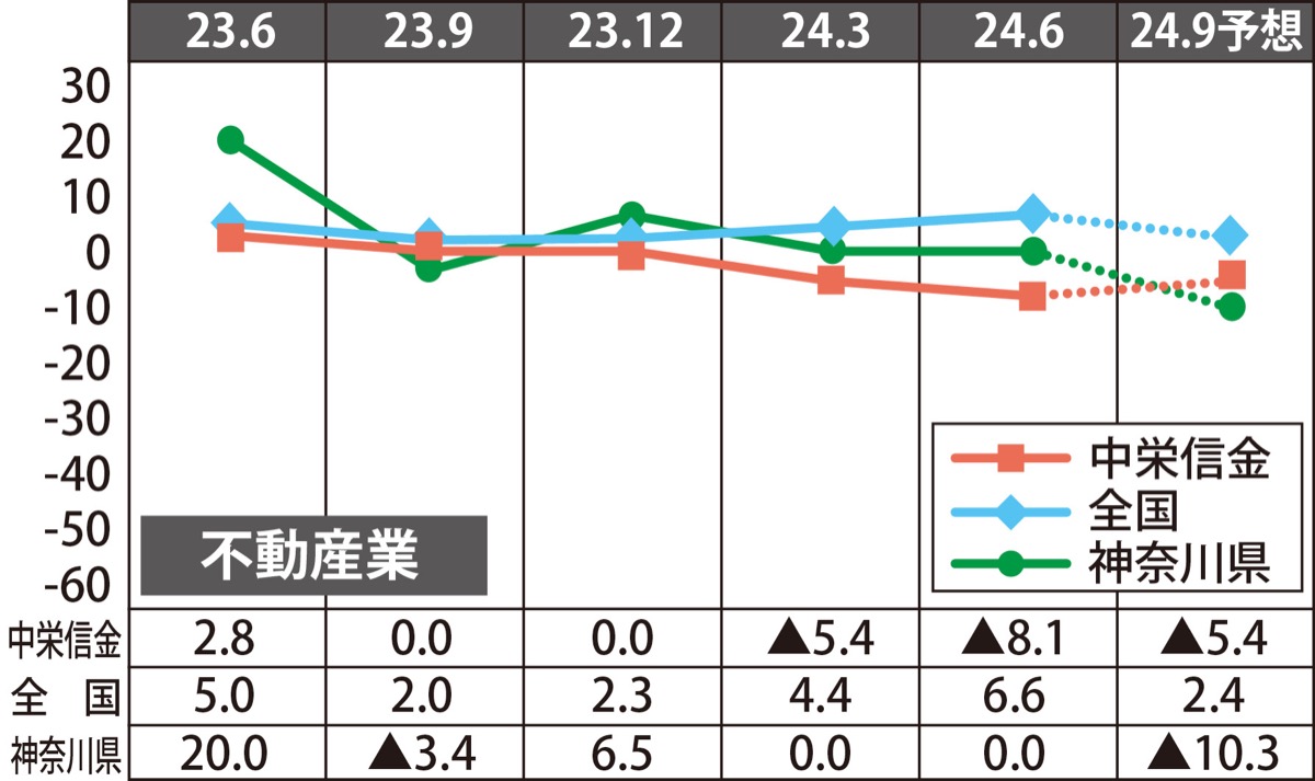 業況判断D.I.は前回調査から2・7ポイント小幅悪化の▲8・1。同金庫主要営業エリア内の販売状況は保有在庫の早期売却が進み、依然として不動産需要は底堅く推移。一方、仕入れコストは上昇しており、商品仕入れに対し慎重姿勢を見せる企業が増加している。今後は物件価格の高騰による買い控えの危惧もあり、先行き不透明な状業が予想されている。今期予想は2・7ポイント小幅改善の▲5・4。