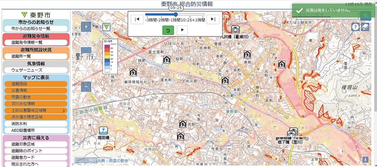 地震や風水害などの災害が起きた際に「どのタイミングで避難すればいいか」「どう備えるべきか」などの情報を一元化したウェブサイト「総合防災情報システム」を、秦野市が運用している。