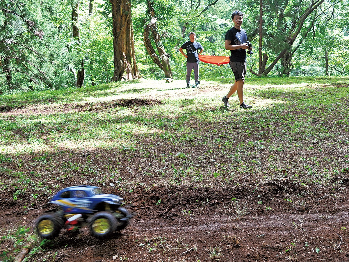 秦野にアウトドアの遊び場をつくり、まちの活性化につなげようと活動する市民団体「鶴嘴(つるはし)-Tsuruhashi-」(廣西壮飛(まさと)代表)が9月21日、猿渡キャンプ場(仮)予定地にRC(ラジオコントロール)カーのコースを試作した。
