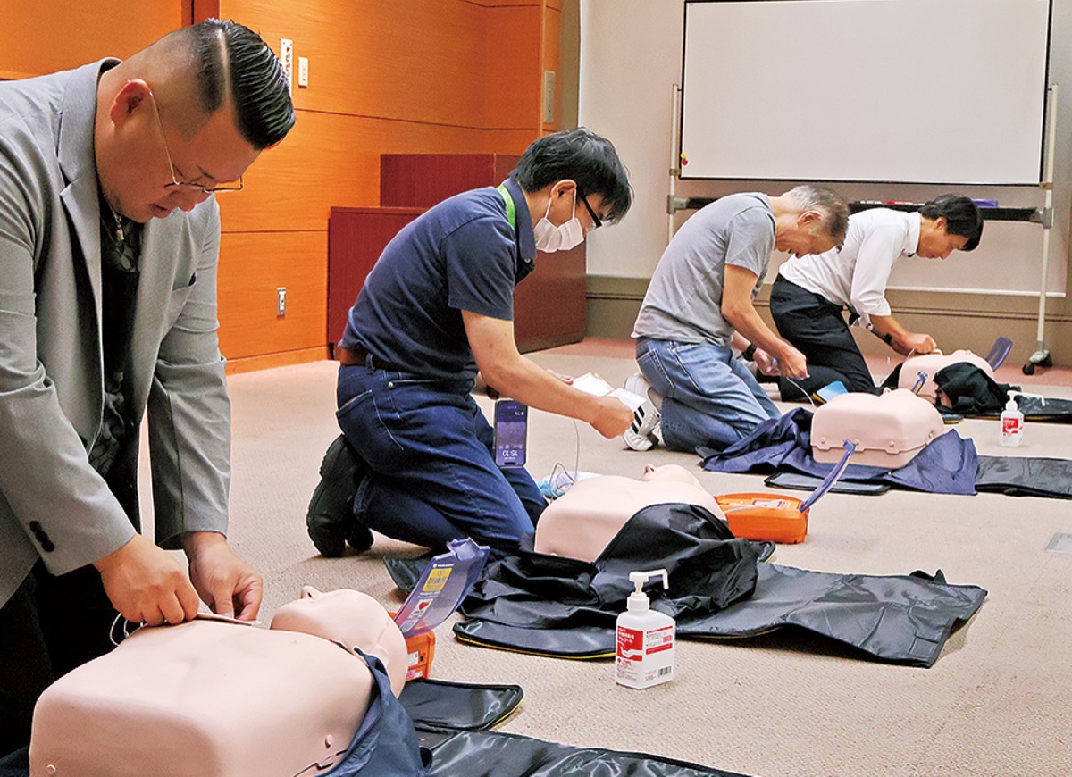 当日はメンバーのほか、一般市民も参加。秦野市消防の協力を得て、胸骨圧迫などの心肺蘇生法とAEDの使い方を学んだ。「AEDは心室細動(心臓のけいれん)を止める機械。電気ショックのあとは心臓の動きが止まるため、必ず胸骨圧迫と組み合わせて使ってください」という説明を受けたあと、参加者らは傷病者の発見から呼びかけ、呼吸の確認、胸骨圧迫、AEDの使用など一連の流れを経験。消防職員は「AEDが自宅の近くにあるかなど、日頃から確認してほしい」と話していた。