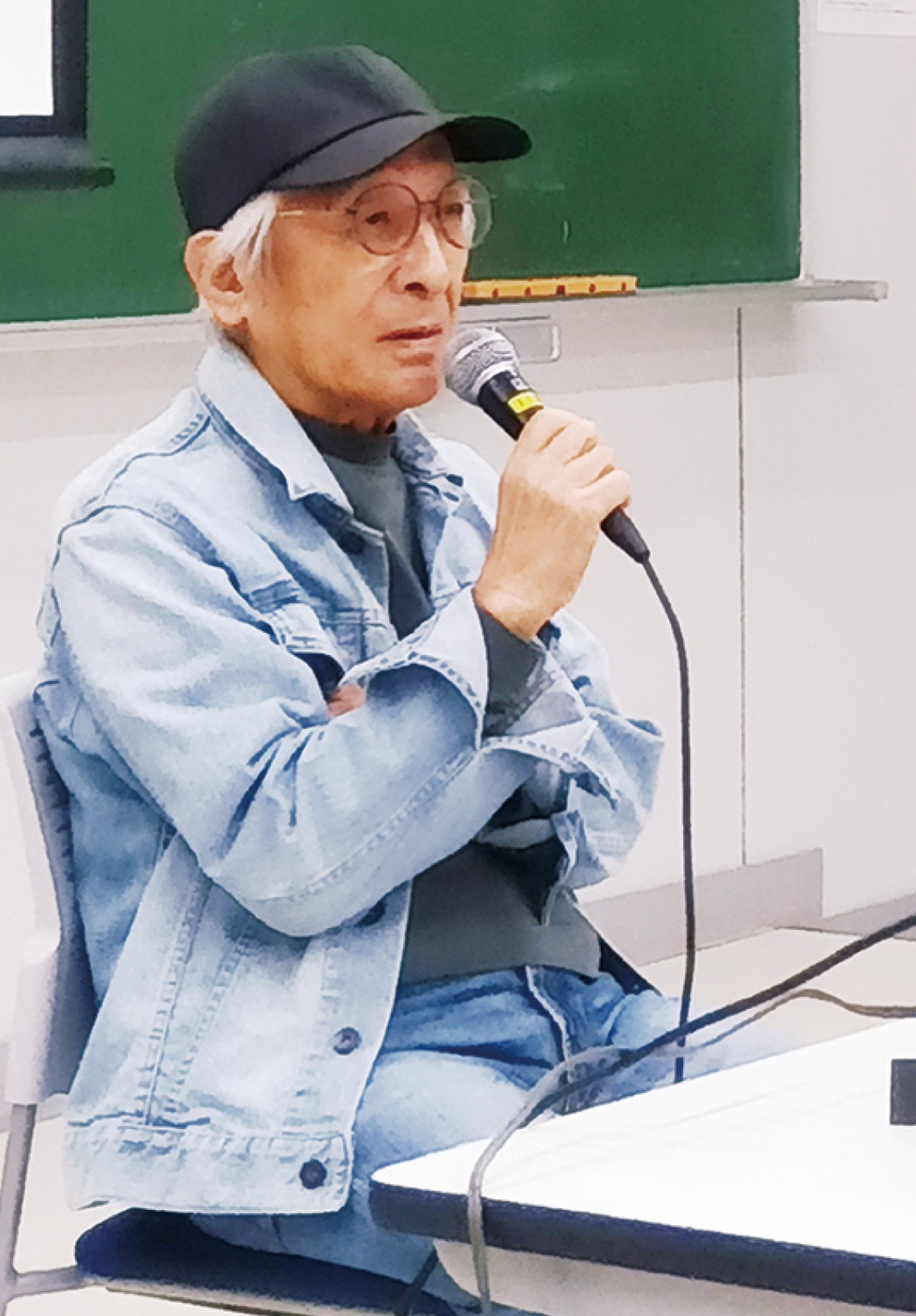 東海大学映画研究会の上映会で、「最後の琵琶法師」と呼ばれた山鹿良之さんを題材にした長編記録映画『琵琶法師 山鹿良之』の上映が行われた。