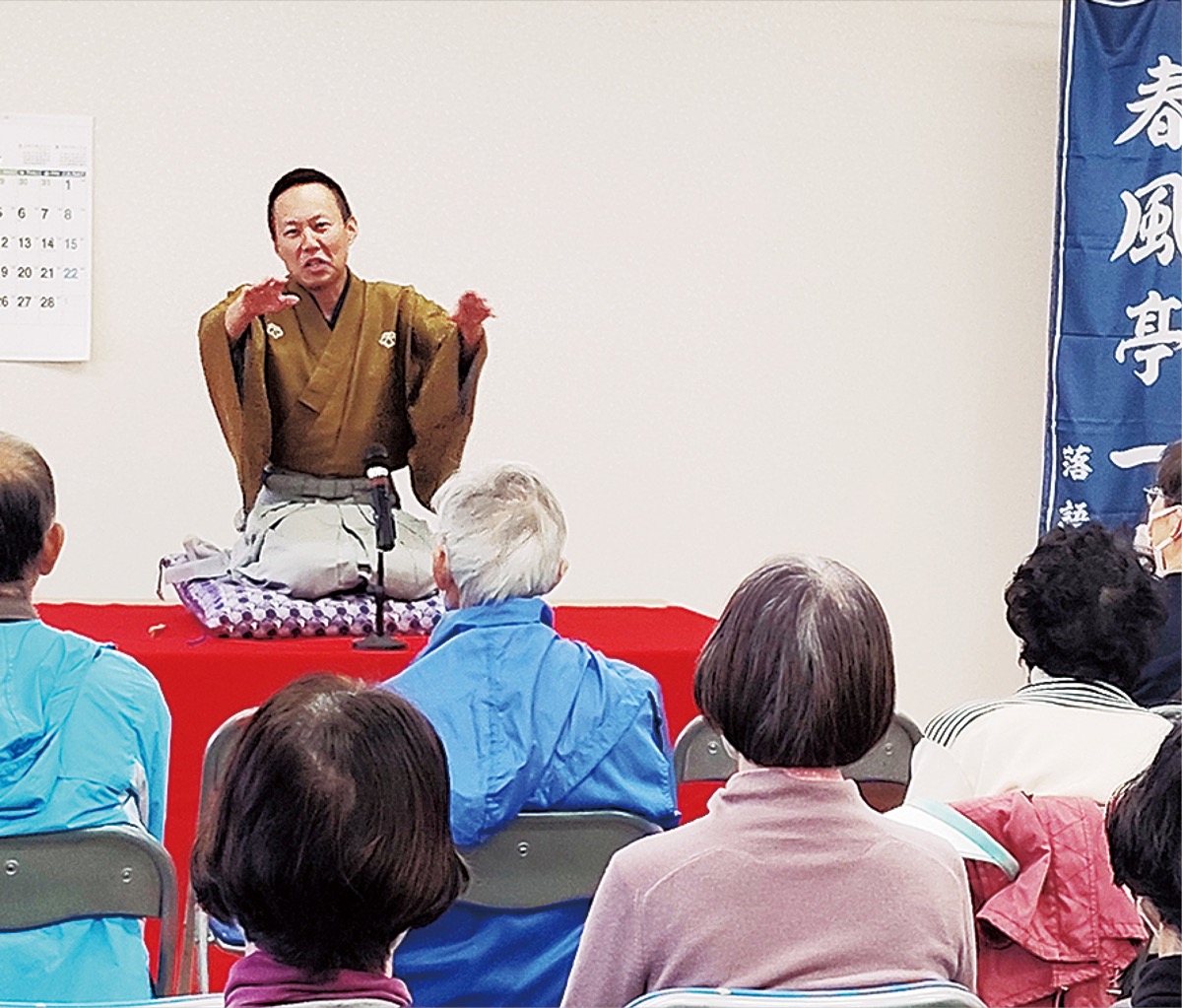秦野市出身ではだのふるさと大使も務めている一左さん。今回の落語会は、「遠くの寄席まで足を運べない人たちも、自治会館なら行かれる」との声を聞いた春風亭一左後援会が企画。一左さんや自治会役員らの協力で実現した。当日は地域住民ら25人が参加。「子ほめ」「真田小僧」などの演目が披露され、会場は笑いに包まれた。「皆さんに気軽に落語に触れていただき、好きになっていただければ」と一左さんと後援会は話す。