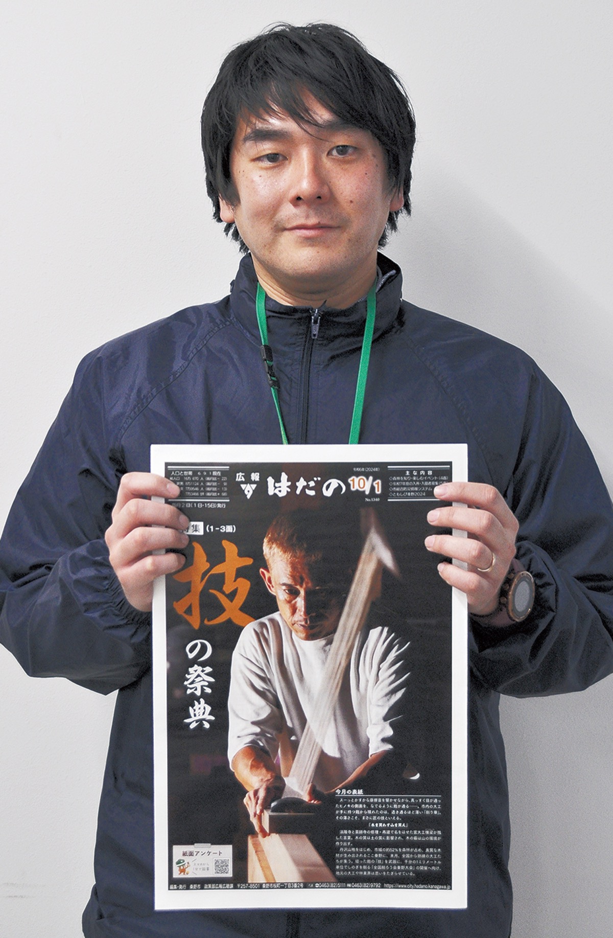 秦野市が発行する「広報はだの」の2024年10月1日号が、「神奈川県広報コンクール」の一枚写真部門で最優秀賞に選ばれた。昨年11月に開催された「第40回全国削ろう会秦野大会」を中ページで特集した10月1日号。同大会実行委員長が鉋薄削りに取り組む姿を撮影した写真が評価された。