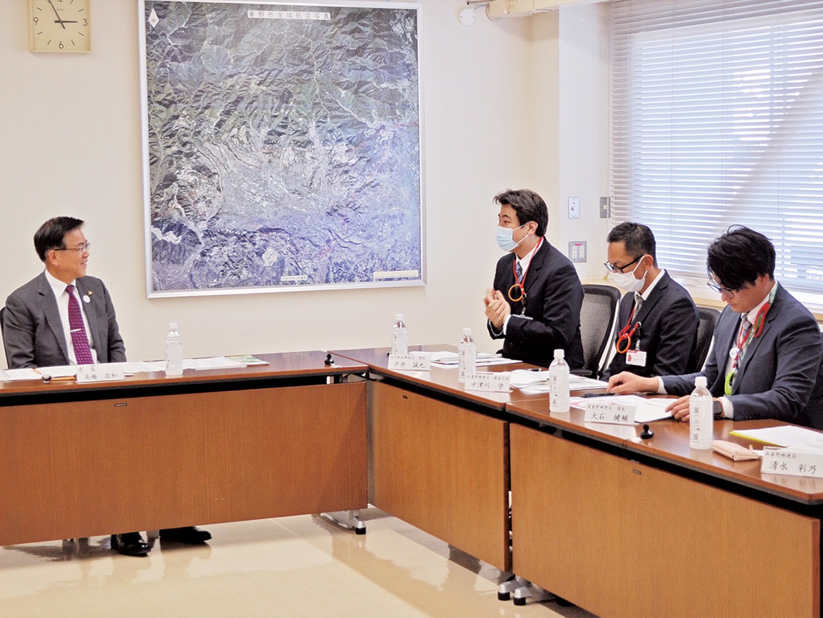 日本郵便(株)の社員と高橋昌和市長の懇談会が、2月13日に秦野市役所で開催された。懇談会には市内郵便局に勤務する若手含む7人が参加し、市長と意見を交わした。