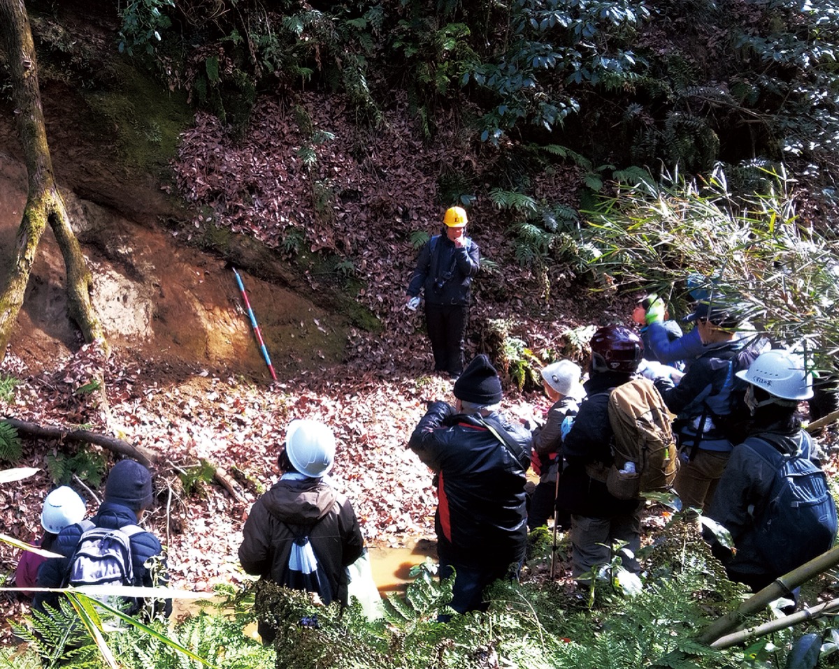 くずはの家ボランティアえのきの会岩石分科会と箱根ジオパーク関係者が2月21日、笠間友博箱根ジオパーク推進協議会事務局次長を講師に「箱根火山の露頭観察と環境整備 in 秦野市市木沢」を開催。神奈川地学会、箱根ジオパークサポーター、地元自治会協力のもと35人が参加した。
