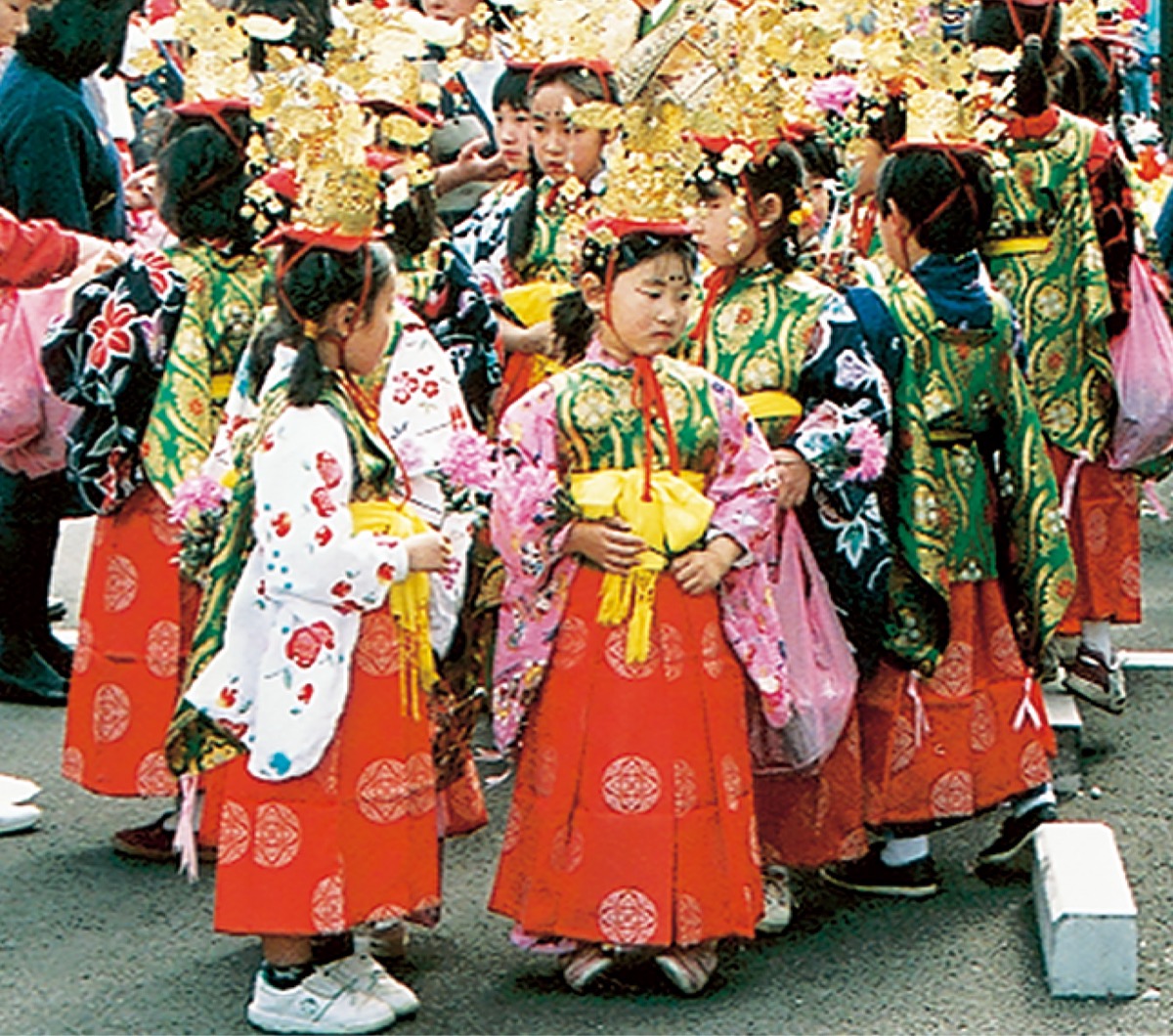 女の子は金の冠、男の子は烏帽子をかぶり、独特のかわいらしい衣装が目を引く稚児行列。6日午後1時に同寺を出発し、秦野駅前通り、片町通り、花みずき通りを練り歩き、午後3時ごろに寺へ戻る。現在、稚児行列の参加者募集が行われている。対象は幼児から小学4年生ぐらいまでの男女20人。参加費1人2000円(衣装は貸し出し)。応募は3月28日(金)まで(定員となり次第締め切り)。雨天中止。問い合わせは命徳寺【電話】0463・81・1474、または十全堂【電話】0463・81・6010へ。